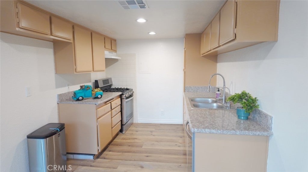 Rare opportunity! A beautifully remodeled Townhouse-style condo in the highly sought-after Magnolia Woods community, perfect for a first-time homebuyer or small family. This unit has been professionally and fully renovated after a previous incident, resulting in a virtually brand-new interior ready for immediate occupancy. KEY HIGHLIGHTS: 2 Bedrooms, 2.5 bathrooms, 1 Bonus Room (Perfect for home office, workstation, small gym, or guest) Move-In Ready Perfection: Experience a clean, bright, and impeccably restored home. All major systems and cosmetic defects were fully remediated to code by licensed contractors—unpack and enjoy! HOA Advantage: Enjoy a low-maintenance lifestyle with the community pool, and HOA-covered costs for trash, exterior maintenance, the roof, and the master insurance policy for the entire complex. Prime Anaheim Location: Nestled in a quiet neighborhood yet central to everything! Minutes from Disneyland, local markets, parks, and top-rated schools—an ideal family starter home. Don't miss this must-see, low-maintenance gem!