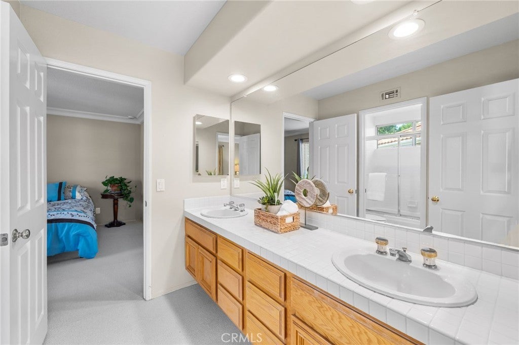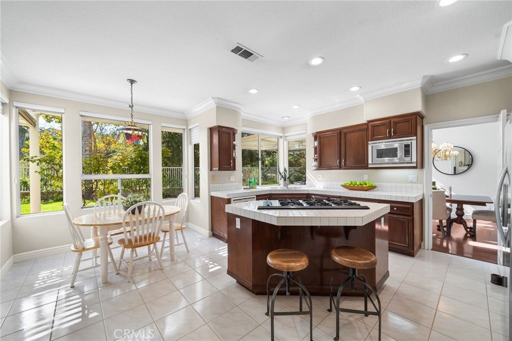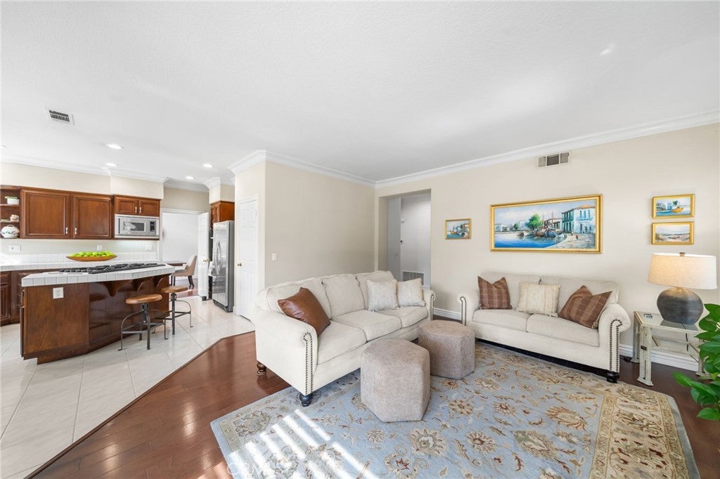 Welcome to nearly 3,000 sq. ft. of versatile living on one of the largest lots in Jasmine Glen, in Anaheim Hills. Backing to a protected nature preserve with sweeping canyon views and no neighbors behind, this home offers rare privacy in a highly desirable neighborhood. The backyard is the true showstopper: a pie-shaped entertainer’s dream with multiple patios, a lush lawn, rose gardens, lemon trees, and side yard space—all set against tranquil canyon views. It’s the perfect backdrop for gatherings or peaceful evenings outdoors. Step through the double-door entry into soaring ceilings, floor-to-ceiling windows, and a bright, comfortable floor plan. The main level features a spacious living room and dining area—ideal for entertaining—alongside a refreshed kitchen with stainless steel appliances, refinished cabinets, a walk-in pantry, and a breakfast nook that flows into the cozy family room with fireplace. A MAIN FLOOR BEDROOM AND BATH provide a perfect setup for guests, extended family, or a dedicated home office. UPSTAIRS, A VERSATILE LOFT/BONUS ROOM can serve as a fifth bedroom, playroom, or office. Two secondary bedrooms share a Jack-and-Jill bath, while the primary suite impresses with vaulted ceilings, a walk-in closet, and a spa-inspired bath with separate tub, shower, and private toilet room. Built-in storage is also located upstairs for everyday convenience. Additional highlights include a 3-car attached garage with storage, an interior laundry room and a prime location near top-rated schools, shopping, dining, and freeway access. Spacious and private—this Jasmine Glen gem checks all the boxes. Welcome home!