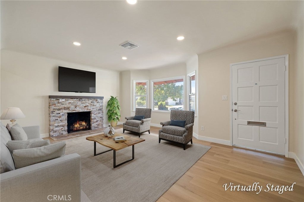 Tastefully upgraded, this lovely home is equipped with all the desired amenities that today’s buyers are looking for. This three-bedroom, two-bath layout features a spacious primary bedroom set apart from the other two bedrooms, with interior space totaling approximately 1,339 sq ft and a large backyard of about 8,024 sq ft that awaits your personal touch on a clean canvas. The living room centers around a stunning fireplace. A new room addition adds 300 sq ft to the primary suite and bath, along with a 450 sq ft attached garage. Inside, you’ll find new cabinets and quartz countertops in the kitchen and bathrooms, 6-panel interior and closet doors, a full suite of stainless steel appliances, and new Conrad composite flooring throughout. The fireplace receives a new stone veneer and travertine hearth, all interior walls, ceilings, and trim are freshly painted, and the home boasts a brand-new main electrical panel with updated wiring, outlets, switches, and light fixtures. Plumbing has been fully updated with ABS drains, copper and PEX hot and cold lines, and modern fixtures in kitchens and baths. A new HVAC system with an AC heat pump, ducting, and vents ensures comfort year-round, and windows have been installed in all bedrooms, bathrooms, kitchen, and garage. Safety and convenience are enhanced with hard-wired, interconnected smoke and CO/smoke detectors. The attic is clean and insulated with new R-30 fiberglass batt, and the 450 sq ft attached garage includes water, drain, gas, electrical, and a vent suitable for a washer and dryer near the water heater. Outdoor living is elevated with Veranda Pro Vinyl Fencing by Barrette Outdoor Living, and two 3/4" PVC irrigation pipes are pre-installed under the driveway for future irrigation. Roofing features CertainTeed Landmark asphalt shingles (2020), and exterior styling showcases newly painted, custom milled V-Channel Redwood siding. Location is in the La Serna High School district, making this a highly desirable opportunity—don’t miss out on this one-of-a-kind home!