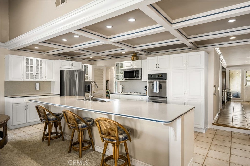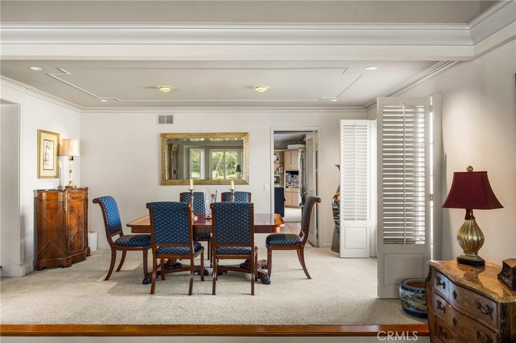 Breakfast Bar, Block Walls, Ceiling Fan(s), Crown Molding, Coffered Ceiling(s), Separate/Formal Dining Room, Recessed Lighting, Sunken Living Room, Unfurnished, All Bedrooms Down, Bedroom on Main Level, Main Level Primary, Solid Surface Counters