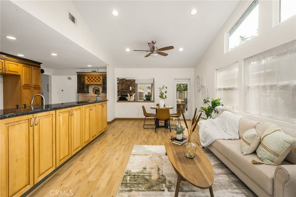 Beautiful pool home nestled in a wonderful, quiet corner of Anaheim. This beautifully updated single storied family home blends modern polish with warm, inviting comfort. Spanning 2,279 square feet, the residence offers 4 spacious bedrooms and a thoughtfully designed open-plan layout that invites natural light and effortless flow from room to room. The heart of the home is a large chef’s kitchen, recently updated with contemporary finishes that delight both cooks and guests. It opens to a cozy living room with a fireplace, creating a welcoming hub for daily life and gatherings. A dining area flows from the living space, and from here, step outside to your own private oasis. In the backyard, a fantastic pool and spa area provides resort-style charm with newer equipment for low-maintenance enjoyment. The energy-forward updates extend beyond the pool: solar panels offer ongoing efficiency, while a newer heating and cooling system ensures comfort year-round. Outside, the corner lot—8,636 square feet—offers extra privacy and curb appeal, framed by a quartet of fruit trees: avocado, orange, tangerine, and lemon—adding a bright, orchard-inspired touch to everyday living. For car enthusiasts or hobbyists, a large garage adds tremendous value: nearly 500 square feet of space with a workshop area, offering ample room for storage, projects, and equipment. This extra space enhances versatility for families and homeowners with active lifestyles. This home’s location matches its serene interior: a wonderful, quiet area of Anaheim with easy access to parks, shopping, and freeways. Disneyland is just a short walk away, making every day feel a little magical. Whether you’re seeking space for family life, convenient entertaining, or a smart, sunlit retreat, this property delivers.
