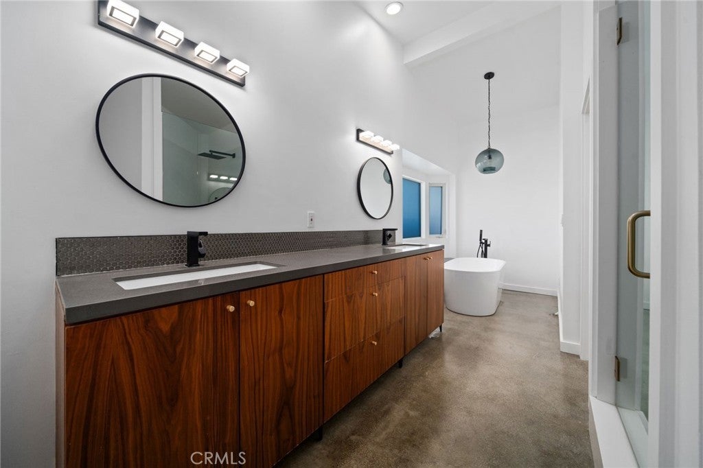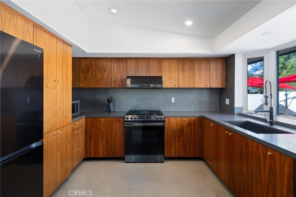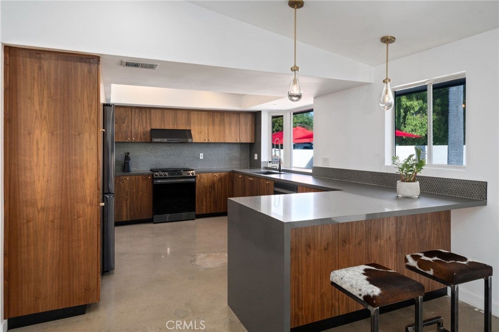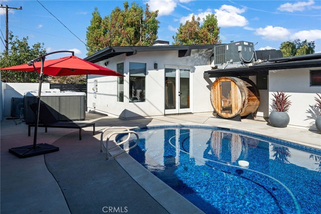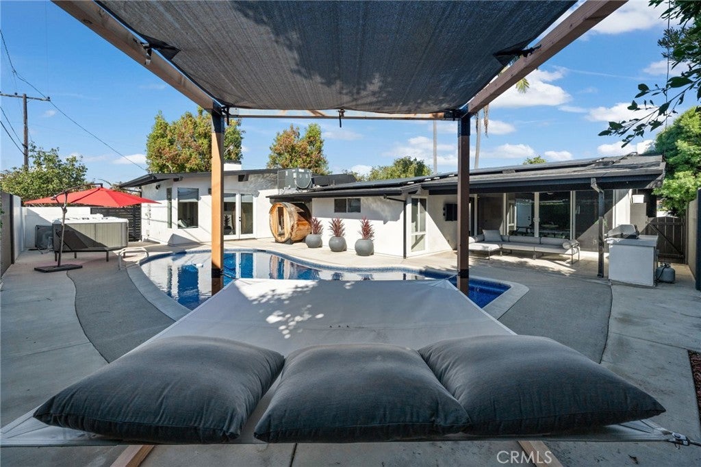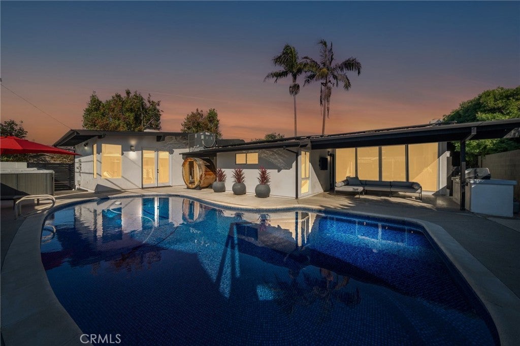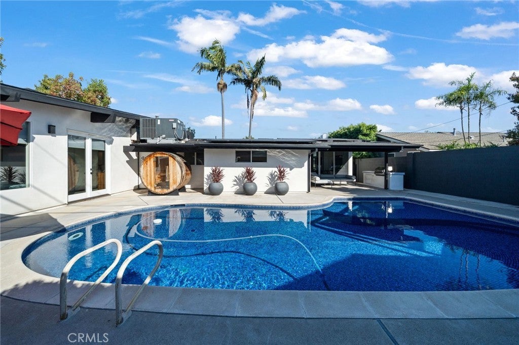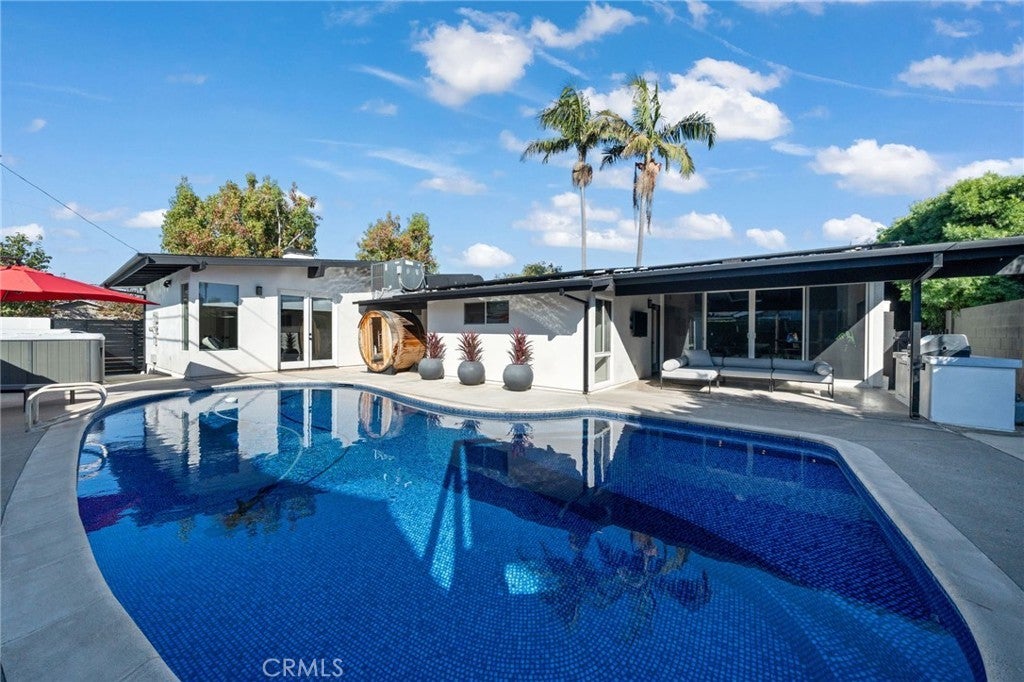 Welcome to this beautifully upgraded Mid-century modern Rossmoor gem, perfectly situated on a prime corner lot within the award-winning Los Alamitos School District. Designed for both comfort and style, this 4-bedroom, 3-bath residence blends modern upgrades with timeless charm, creating an ideal setting for everyday living and effortless entertaining. Inside, you’ll find polished floors, a fully renovated kitchen and baths, and LED lighting throughout. Every detail has been thoughtfully updated, including a two-year-old AC system, new appliances, smart TVs, and Nest-controlled temperature for year-round comfort. The bathrooms showcase one-piece stone shower walls, eliminating grout lines for a sleek, low-maintenance finish. The garage has been fully upgraded with drywall, epoxy floors, and a new opener, providing a polished extension of the home’s living space. Outside, the enhancements continue with new stucco completed just two years ago and refreshed shingles over the existing roof. The backyard is a true entertainer’s paradise, featuring a pool. swim spa, sauna and a custom Santa Maria Argentine-style BBQ with an integrated empanada and pizza oven, and an inviting patio for outdoor dining and relaxation. With easy access to local shopping, dining, and parks, this property offers the perfect blend of convenience, sophistication, and Southern California lifestyle.