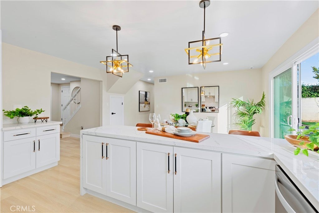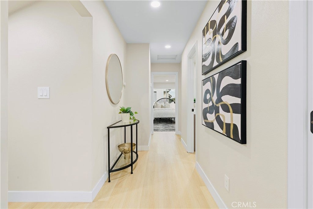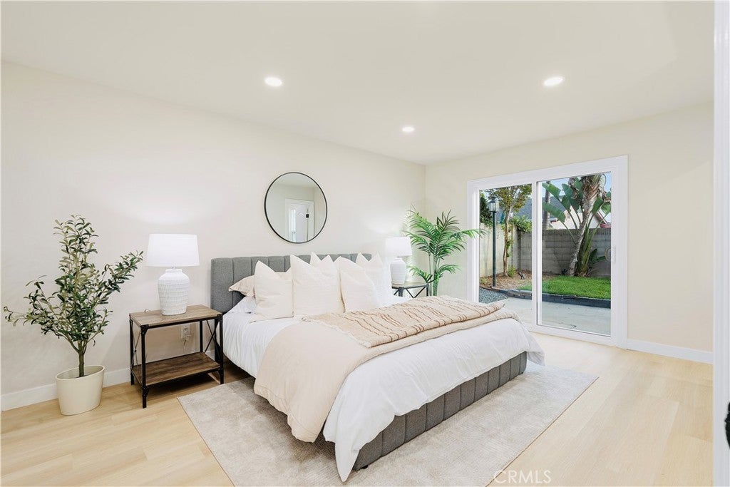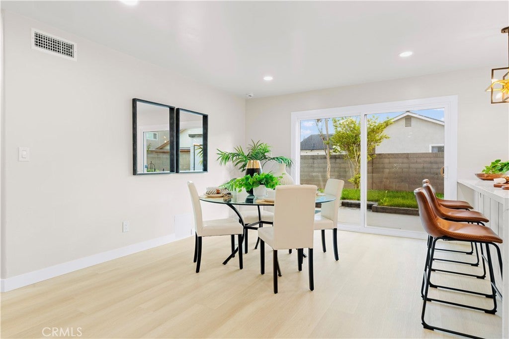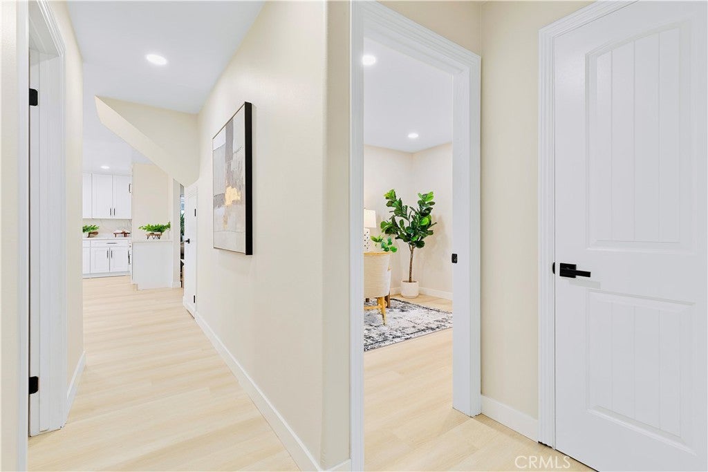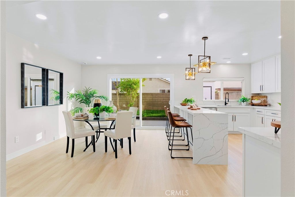 POLISHED TO PERFECTION: A Turnkey sophistication in the heart of La Palma. This beautifully refreshed 5-bedroom, 3-bath home offers 2,072 sqft of living space on a 4,840 sqft lot, and includes two master bedrooms (one downstairs and one upstairs) for exceptional flexibility. Step inside to light-filled spaces dressed in new luxury vinyl flooring and fresh interior paint. The reimagined kitchen is a showstopper, featuring custom soft-close cabinetry, new quartz countertops and backsplash, and high-end finishes that make cooking and gathering a joy. A newly permitted electric fireplace adds warm ambiance to the living area, while a brand-new sliding door invites seamless flow to the backyard. All three bathrooms have been completely remodeled with stylish, contemporary selections. Comfort comes easy with a new HVAC system and ductwork, and peace of mind is built in: improvements are permitted with the city. Smart-home touches include a new Ring camera and keypad entry. Curb appeal shines with newly painted exterior, lush new sod, blooming roses, and a new front-and-back sprinkler system to keep everything vibrant. Beautifully grounded lamp posts illuminate the front and back yards, creating a charming setting for evening dining, weekend barbecues, and relaxed outdoor living. Location is a standout. Enjoy La Palma’s welcoming, well-kept community vibe with quick access to parks, trails, and city events at La Palma Central Park. You’re moments from shopping, dining, and entertainment in nearby Cypress, Cerritos, and Buena Park, plus convenient commuting via the 91, 605, and 5 freeways. The area is served by the highly rated Fullerton Joint Union High School District. Move-in ready, stylish, and thoughtfully upgraded inside and out - this is the La Palma lifestyle at its best. Come experience it in person.