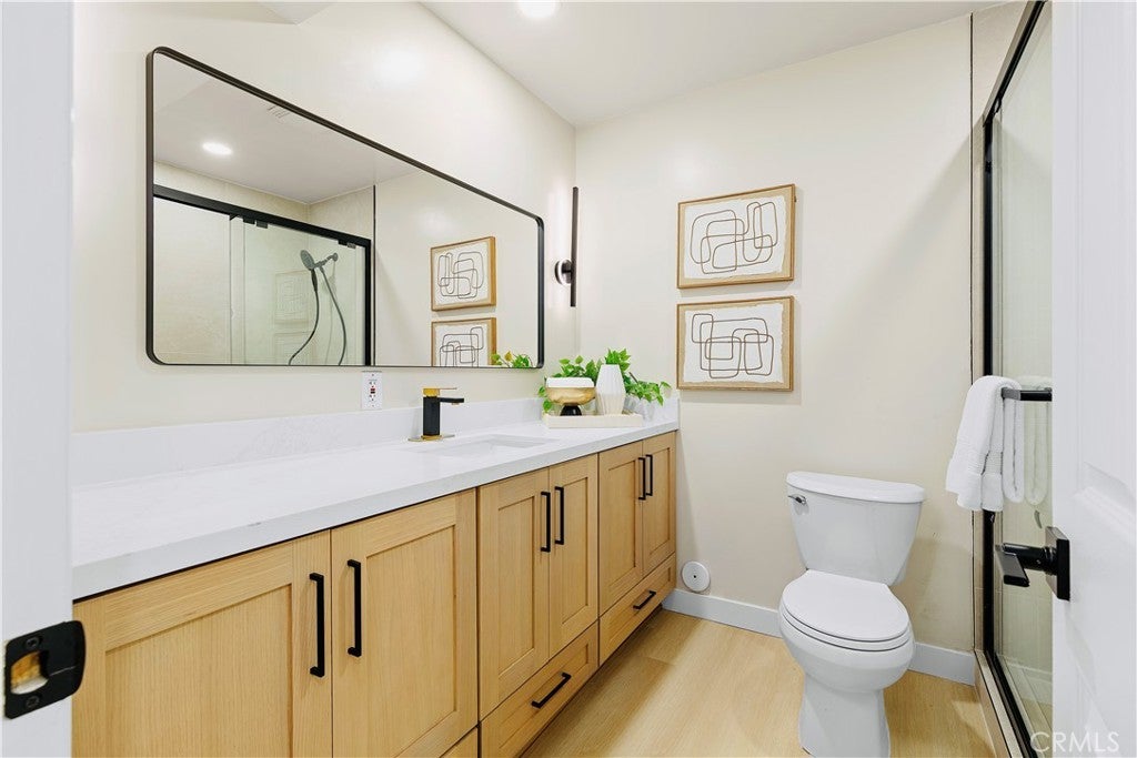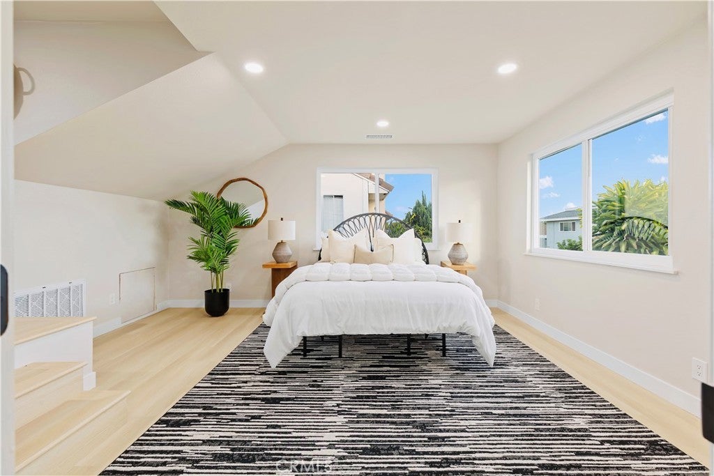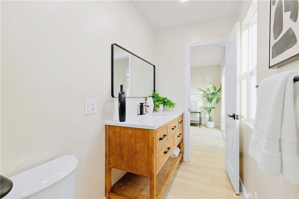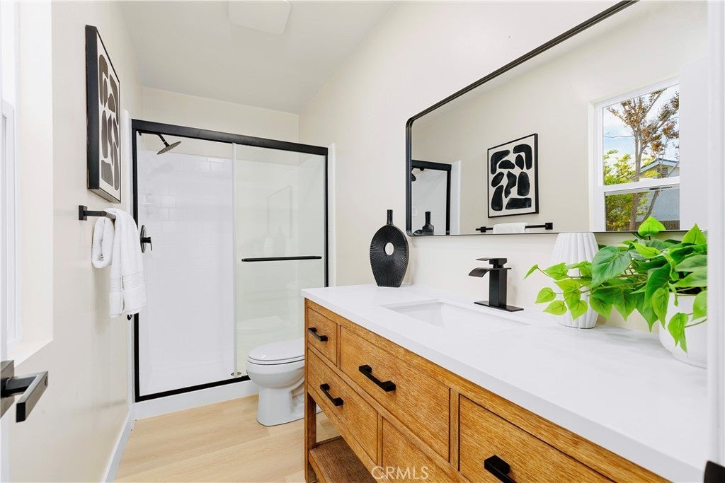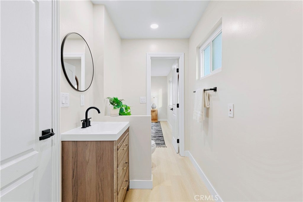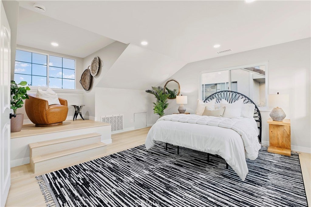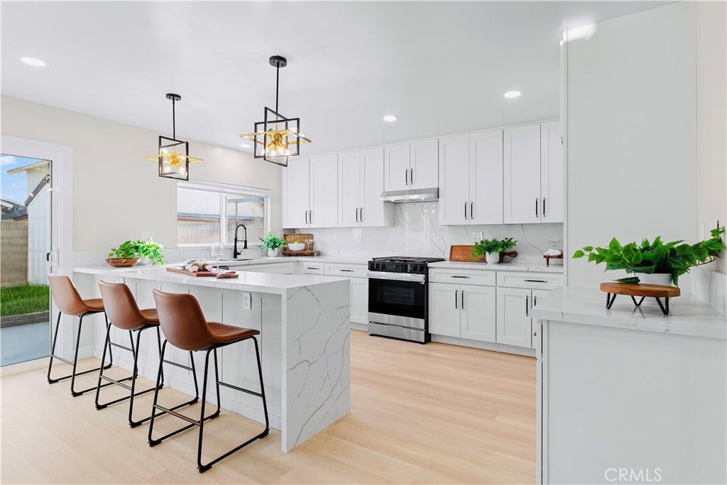 POLISHED TO PERFECTION: A Turnkey sophistication in the heart of La Palma. This beautifully refreshed 5-bedroom, 3-bath home offers 2,072 sqft of living space on a 4,840 sqft lot, and includes two master bedrooms (one downstairs and one upstairs) for exceptional flexibility. Step inside to light-filled spaces dressed in new luxury vinyl flooring and fresh interior paint. The reimagined kitchen is a showstopper, featuring custom soft-close cabinetry, new quartz countertops and backsplash, and high-end finishes that make cooking and gathering a joy. A newly permitted electric fireplace adds warm ambiance to the living area, while a brand-new sliding door invites seamless flow to the backyard. All three bathrooms have been completely remodeled with stylish, contemporary selections. Comfort comes easy with a new HVAC system and ductwork, and peace of mind is built in: improvements are permitted with the city. Smart-home touches include a new Ring camera and keypad entry. Curb appeal shines with newly painted exterior, lush new sod, blooming roses, and a new front-and-back sprinkler system to keep everything vibrant. Beautifully grounded lamp posts illuminate the front and back yards, creating a charming setting for evening dining, weekend barbecues, and relaxed outdoor living. Location is a standout. Enjoy La Palma’s welcoming, well-kept community vibe with quick access to parks, trails, and city events at La Palma Central Park. You’re moments from shopping, dining, and entertainment in nearby Cypress, Cerritos, and Buena Park, plus convenient commuting via the 91, 605, and 5 freeways. The area is served by the highly rated Fullerton Joint Union High School District. Move-in ready, stylish, and thoughtfully upgraded inside and out - this is the La Palma lifestyle at its best. Come experience it in person.