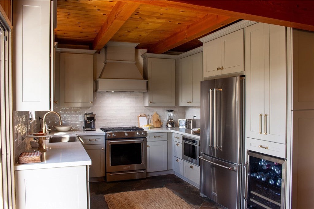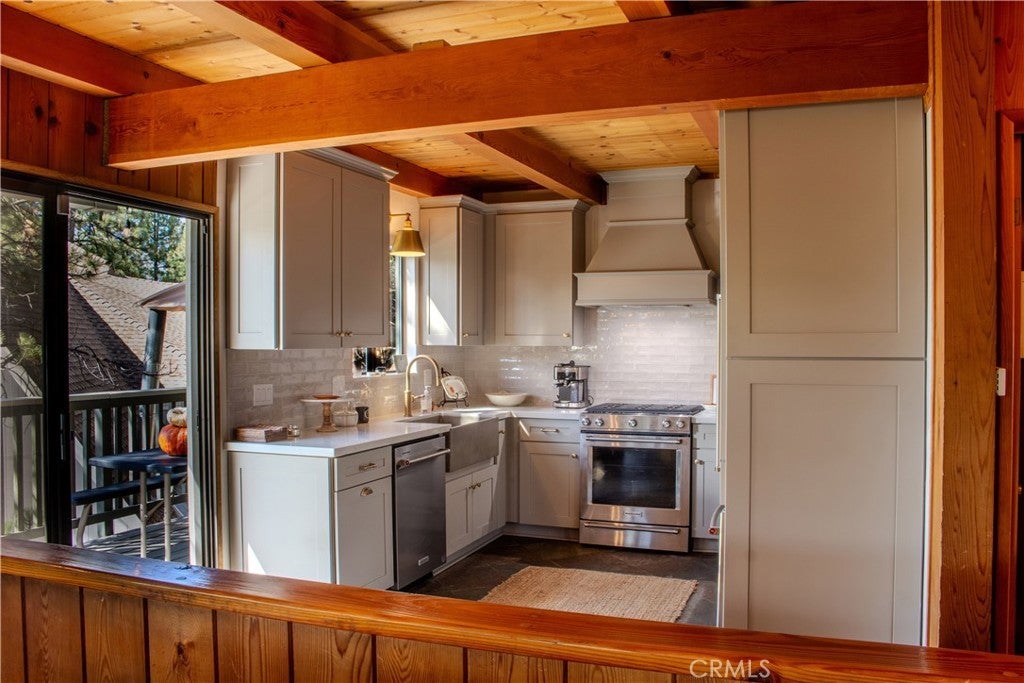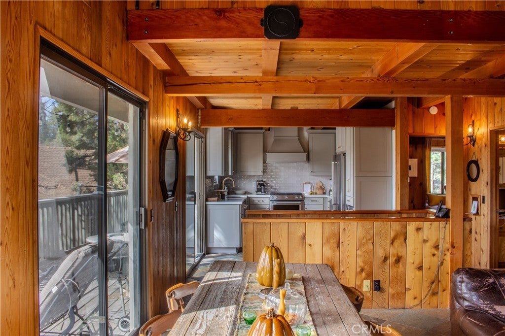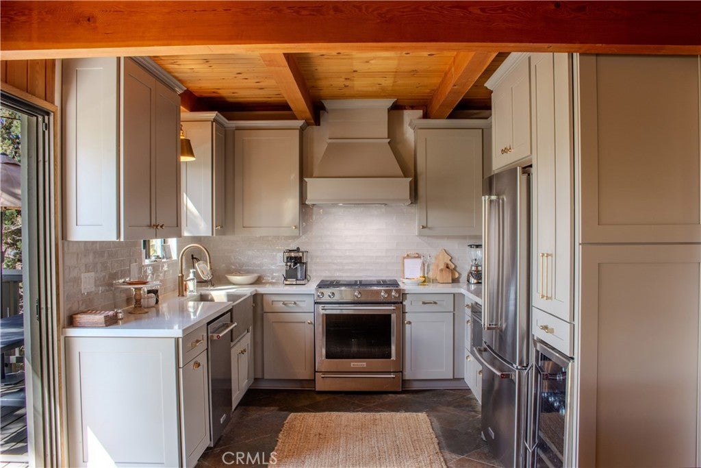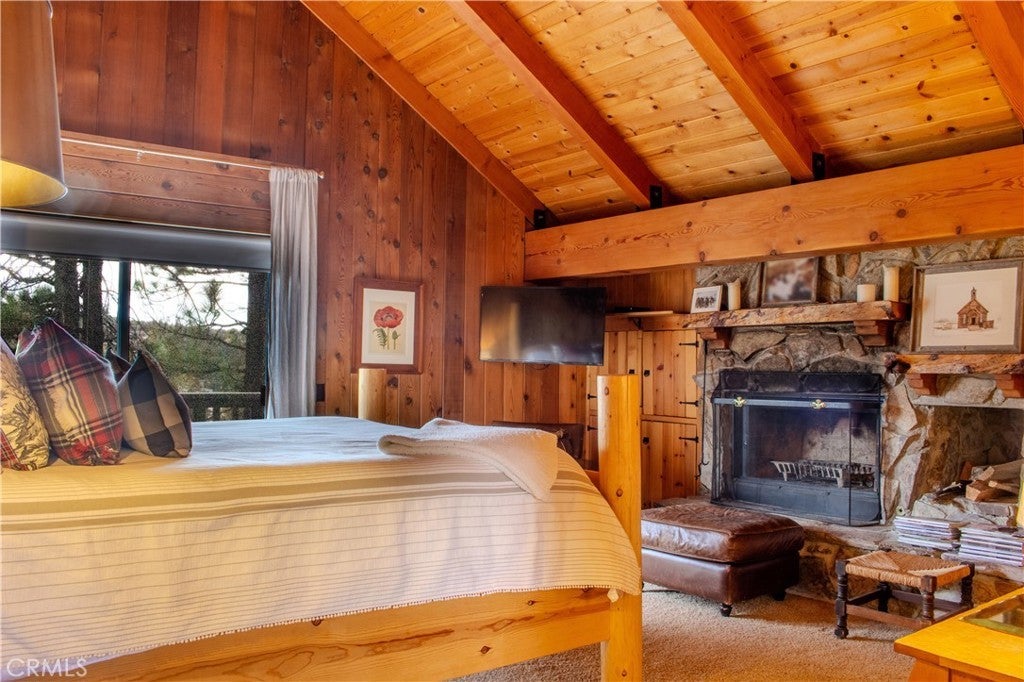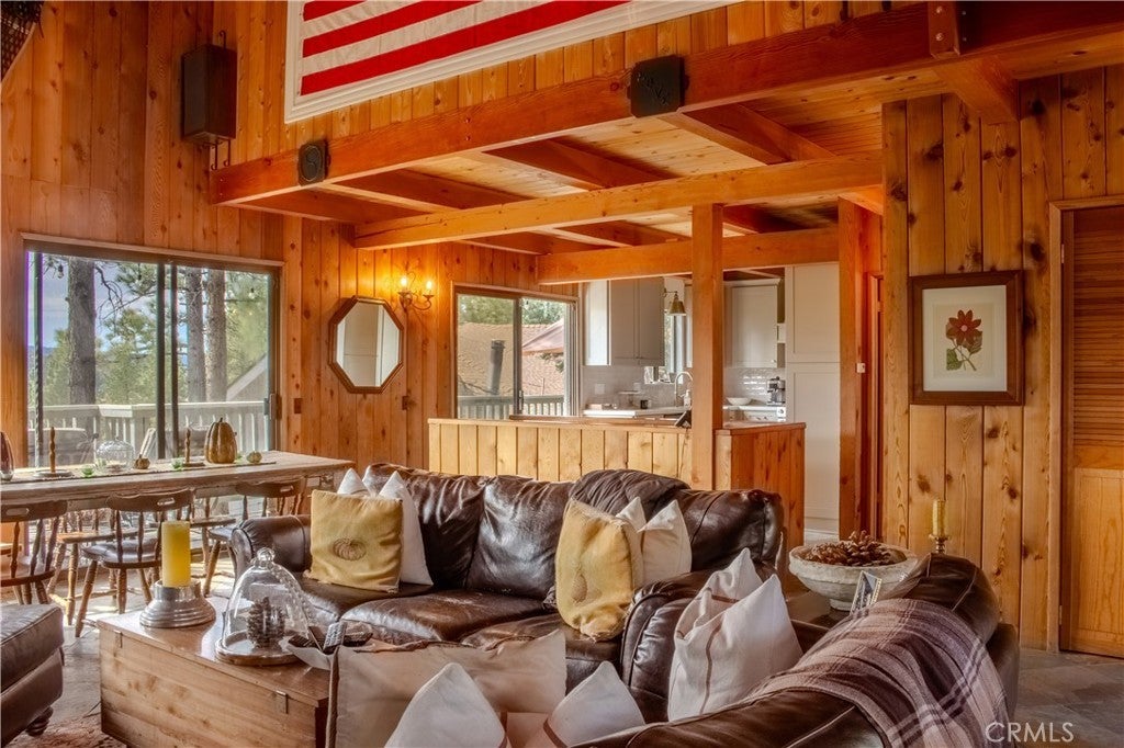 Welcome to 1007 White Mountain Drive, a charming mountain retreat in one of Big Bear City’s most desirable neighborhoods. This 3-level, 4-bedroom, 3-bathroom home blends modern upgrades with rustic mountain charm while offering stunning views of the mountain ski resorts from its decks. The main level features a newly remodeled kitchen completed just one year ago with brand-new stainless-steel appliances including a 5-burner range, oven, dishwasher, wine and beverage fridge, and a modern concrete sink. The open-concept living area showcases vaulted wood-beamed ceilings and a wood-burning fireplace with beautiful stonework and a wooden mantle, opening to an expansive deck with panoramic mountain views. The first level includes two bedrooms and a full shared bathroom, while the third level is dedicated to the primary suite with its own fireplace, private deck, dual vanity, and a 3/4 bathroom. Situated on a 6,800 square foot lot, this home offers both a peaceful setting and convenience, located less than 10 minutes from The Village, Snow Summit, Bear Mountain Resort, Big Bear Lake, the Alpine Slide, Meadow Park, and Big Bear Alpine Zoo. Perfect for a full-time residence, weekend getaway, or vacation rental, 1007 White Mountain Drive combines comfort, style and unbeatable views.
