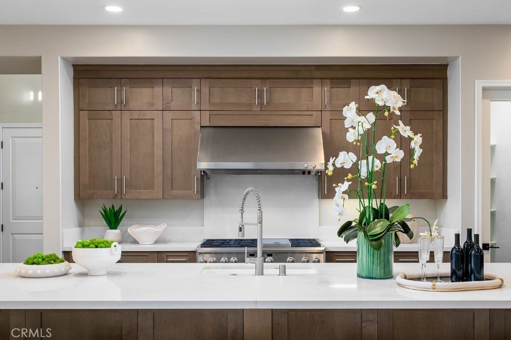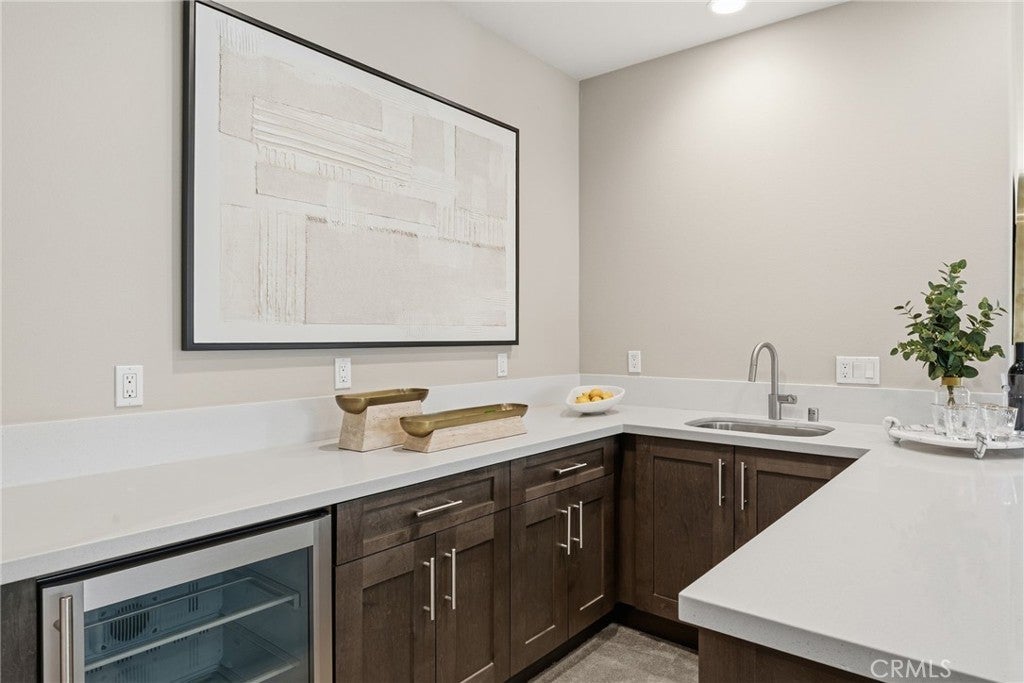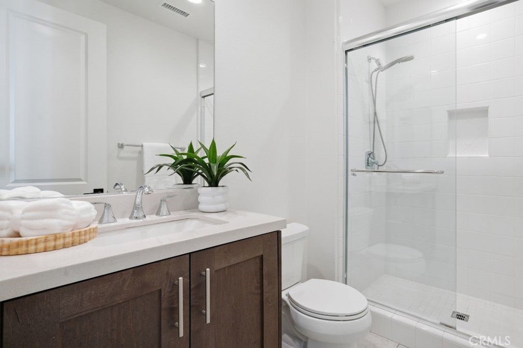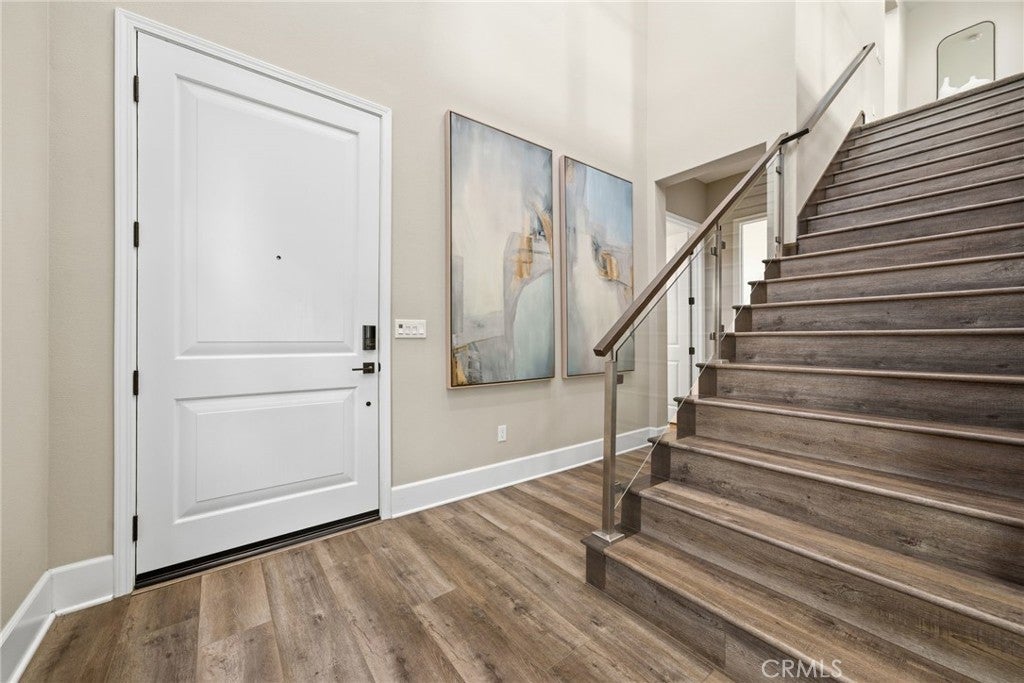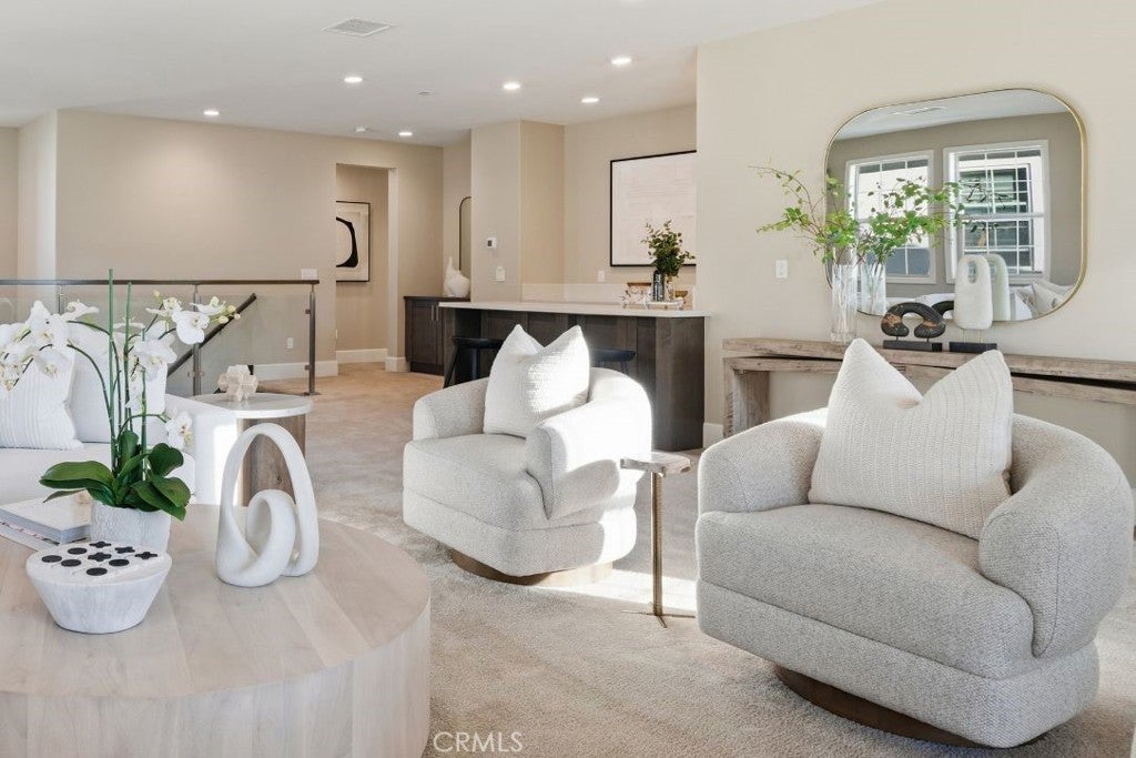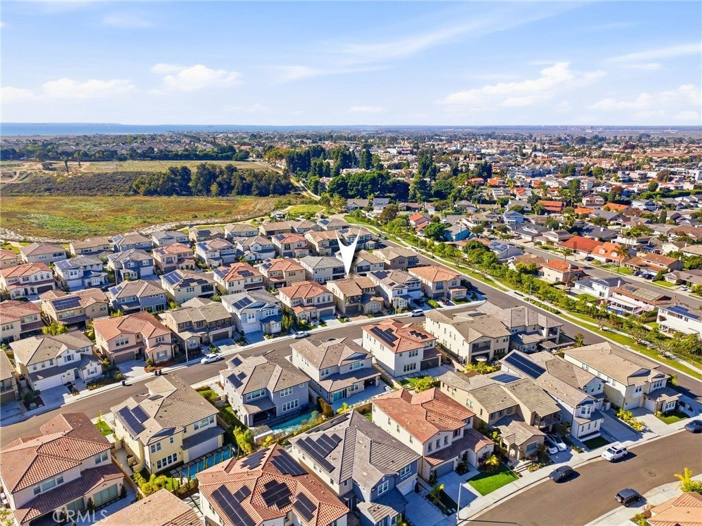 Discover an extraordinary opportunity to own one of only 111 exclusive residences in the prestigious Parkside Estates. Perfectly positioned near Bolsa Chica State Beach, this coastal community is surrounded by 20 acres of open space, a wildlife habitat preservation area, and picturesque walking trails leading directly to the ocean. This modern craftsman masterpiece is one of only 21 homes with this highly sought-after floor plan, offering over 3,800 sq. ft. of refined living space with dual living quarters, ideal for multi-generational living or hosting guests in comfort and style. With 5 bedrooms and 5.5 bathrooms, this residence perfectly balances sophistication and functionality. Step inside to a dramatic 20-foot-plus ceiling foyer adorned with maple handrails, glass-panel staircases, and designer lighting, setting the tone for the home’s elevated craftsmanship. The chef’s kitchen boasts an expansive 11-foot quartz island, premium stainless-steel appliances, and seamless flow into the open-concept great room and formal dining area—perfect for entertaining. The main-level primary suite is a serene retreat featuring a spa-inspired bath with a soaking tub, a 7-foot glass shower, and a 10-foot dual-vanity dressing area. A separate 13’ × 15’ custom wardrobe room with washer/dryer hookups adds a touch of bespoke luxury and practicality. A second ensuite bedroom downstairs offers added flexibility for guests or extended family. Upstairs, discover three spacious bedrooms, each with its own ensuite bath and walk-in closet, plus a versatile bonus room with private balcony and a wet bar easily convertible into a kitchenette—creating endless possibilities for leisure or privacy. For everyday convenience, a dedicated laundry room with washer/dryer connections upstairs complements the additional hookups downstairs, making daily living effortless. Embrace true California indoor-outdoor living as you open the 3-panel stacking glass sliders to the inviting California Room, complete with an in-wall gas fireplace. Entertain over 30 guests effortlessly, savor the refreshing ocean breeze on warm summer evenings, or close the outer glass sliders to enjoy the cozy ambiance year-round. Additional highlights include 18 paid-off solar panels, an EV charger, dual laundry areas, pre-wiring for security cameras and a future pool or spa, and upgraded 220-volt outlets for flexible use.