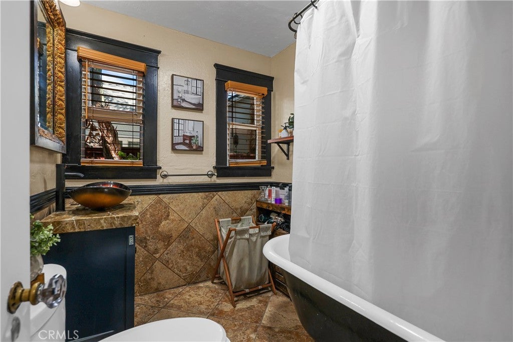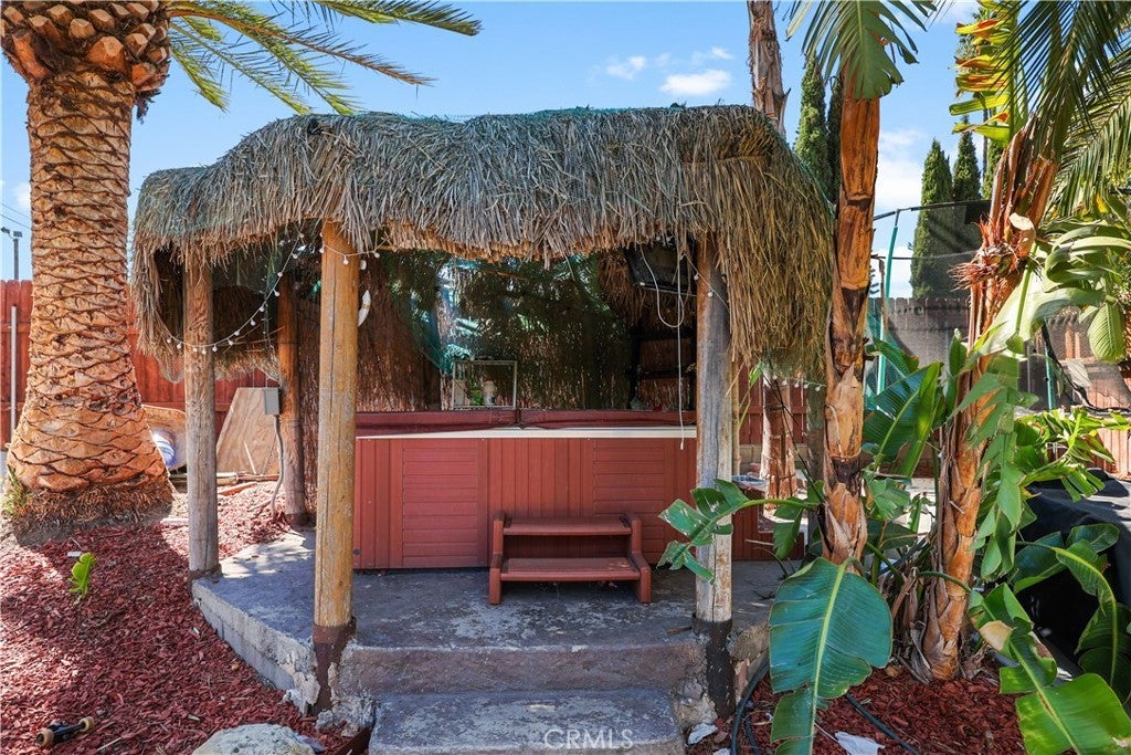 This home located in the Corona Historic District will check all the boxes on your checklist. This 1,200 square foot, single-story home is situated on a generous 7,400 square foot lot. The flourishing community offers a unique lifestyle experience with direct access to Husted Park right from your backyard. The interior boasts a charming Spanish style, a modified open-concept layout, and elegant wood-framed arches throughout. The kitchen has been beautifully updated with modern upgrades, granite countertops, newer cabinets, and appliances. Additional home features include upgraded copper plumbing, a new sewer line, tankless water heaters, and air conditioning. The main house includes two full bedrooms and a bathroom, with an additional living space, located in the backyard. This private space has a separate bedroom and full bathroom, perfect for guests or extended family. You will be captivated by the outdoor living space, truly an entertainer's paradise. It features resort-style palms, meticulously maintained landscaping, a newly cemented area, and a deck with a private jacuzzi. Imagine gathering friends and family for drinks at the tiki bar or relaxing around the firepit. The location is ideal, offering private access to Husted Park directly from your gate. The highly coveted Corona Historic District lifestyle makes this the perfect place to call home.