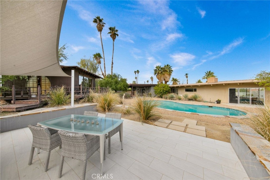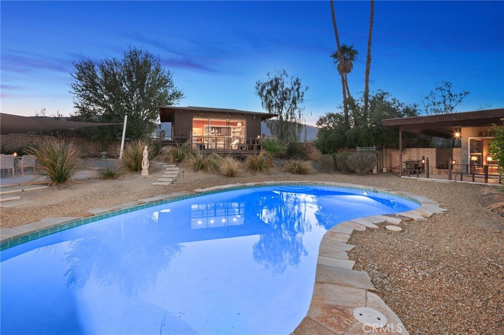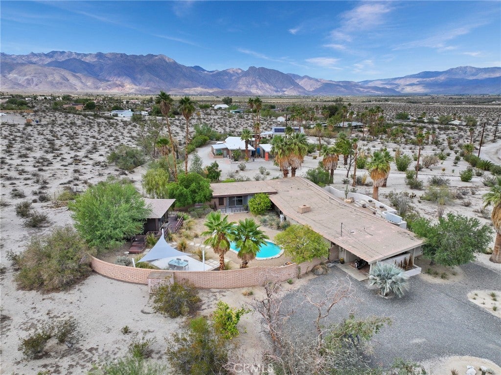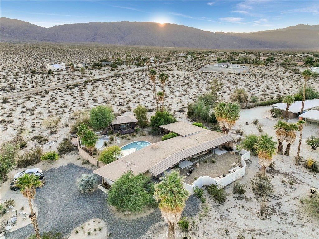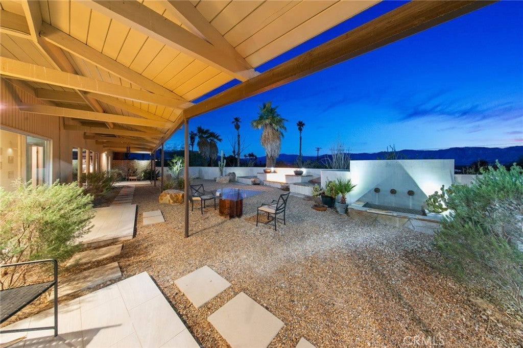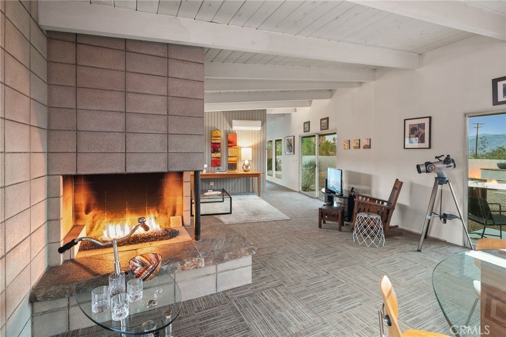 This private resort-like property is an oasis of mid-century modernism in the charming town of Borrego Springs, which sits within the largest state park in California – Anza-Borrego Desert State Park. Surrounded by stunning desert and mountain landscapes, this property sits on a lot measuring over six acres and features a kidney shaped pool, large covered patio areas for dining and entertaining, firepits, fountains, an outdoor cooking area with built-in barbeque, a detached tea house retrofitted into a studio kitchen, and expansive fenced-in yard areas with desert landscaping. The residence is a step back in time to an inspiring era of design in which architects explored the potential of indoor-outdoor living and clean architectural lines. The home features angled roof lines, open beam tongue and groove ceilings, walls of glass and large sliders that connect the living areas to adjacent patios, a large cinder block fireplace with flagstone hearth, and spacious bedrooms. This serene property can serve as either a primary residence or a peaceful desert getaway, and the area is a haven for outdoor enthusiast who enjoy hiking, cycling, golf, clean air and clear skies. Other area attractions include the Borrego Art Institute and the Borrego Springs Performing Arts Center. Come and explore, and experience the unique magic of desert midcentury modernism.