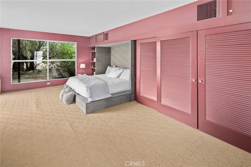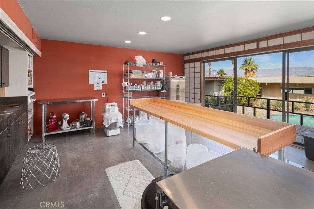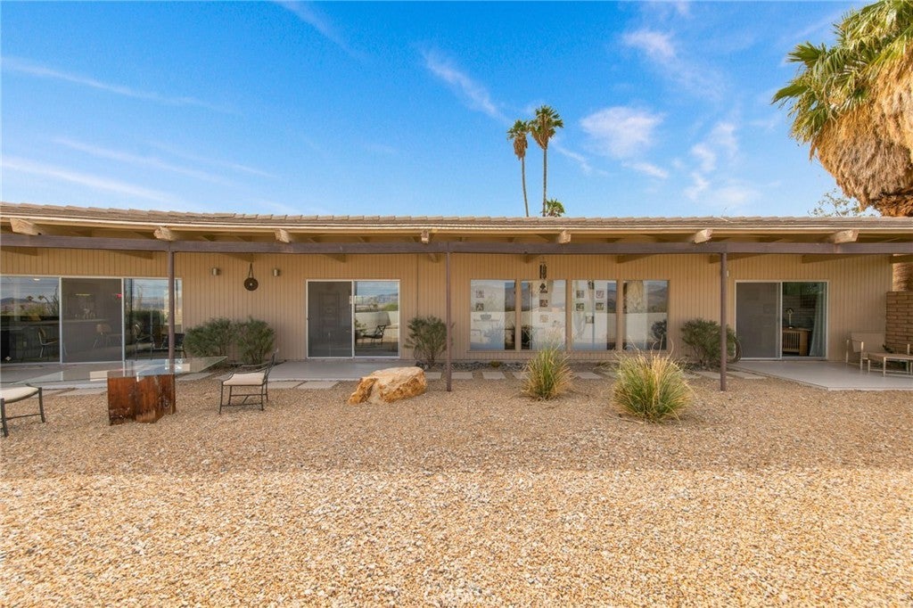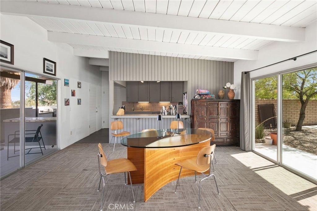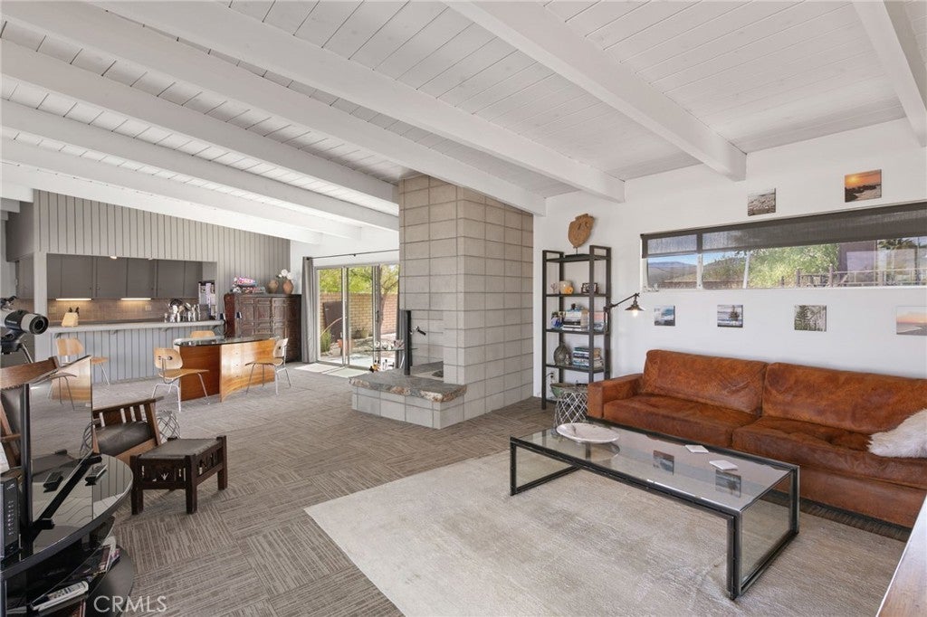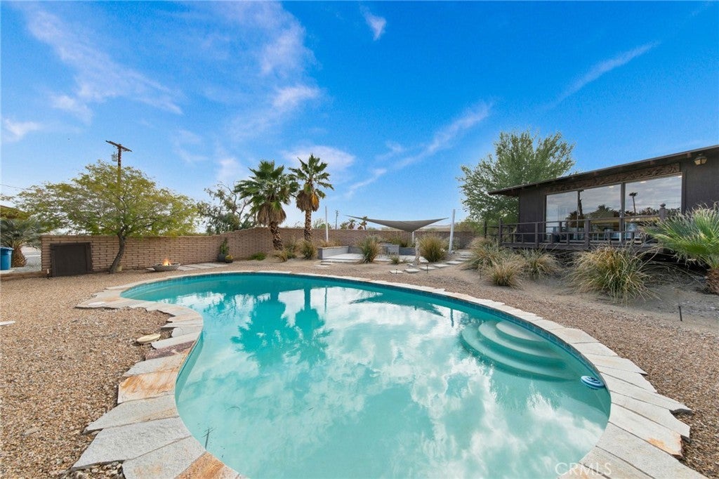 This private resort-like property is an oasis of mid-century modernism in the charming town of Borrego Springs, which sits within the largest state park in California – Anza-Borrego Desert State Park. Surrounded by stunning desert and mountain landscapes, this property sits on a lot measuring over six acres and features a kidney shaped pool, large covered patio areas for dining and entertaining, firepits, fountains, an outdoor cooking area with built-in barbeque, a detached tea house retrofitted into a studio kitchen, and expansive fenced-in yard areas with desert landscaping. The residence is a step back in time to an inspiring era of design in which architects explored the potential of indoor-outdoor living and clean architectural lines. The home features angled roof lines, open beam tongue and groove ceilings, walls of glass and large sliders that connect the living areas to adjacent patios, a large cinder block fireplace with flagstone hearth, and spacious bedrooms. This serene property can serve as either a primary residence or a peaceful desert getaway, and the area is a haven for outdoor enthusiast who enjoy hiking, cycling, golf, clean air and clear skies. Other area attractions include the Borrego Art Institute and the Borrego Springs Performing Arts Center. Come and explore, and experience the unique magic of desert midcentury modernism.