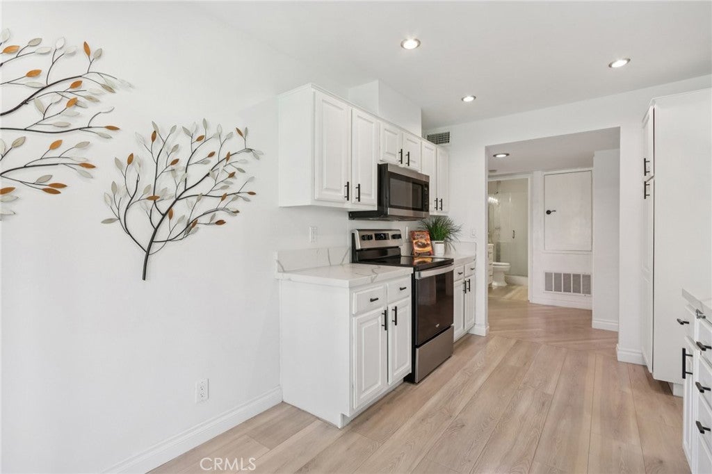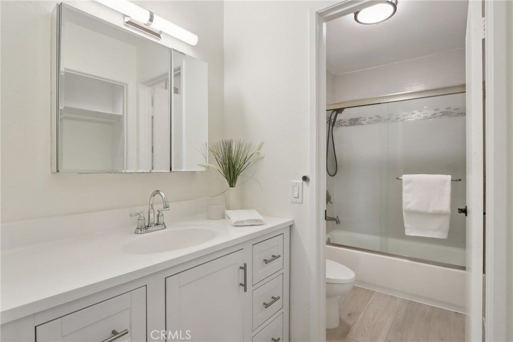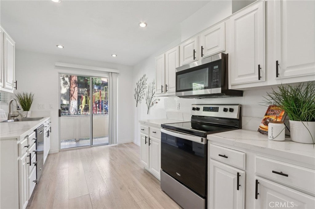 Welcome to The Hills of Yorba Linda! This beautifully maintained single-level, downstairs condominium offers the perfect balance of comfort and style in a private, serene location. The spacious 2-bedroom, 2-bath floor plan features large bedrooms and a bright, open living space that feels airy and inviting. The primary suite includes a generous walk-in closet, a remodeled en-suite bath, and direct access to the balcony—perfect for enjoying your morning coffee or evening breeze. The secondary bedroom offers flexibility for family, guests, or a home office. The kitchen boasts timeless white cabinetry, quartz countertops, and black/stainless appliances, seamlessly connecting to the dining area and expansive living room—ideal for both everyday living and entertaining. Wood-laminate flooring flows throughout, adding warmth and easy maintenance. The community offers resort-style amenities, including pools, spas, tennis courts, and a fitness center. Surrounded by scenic hiking trails and just moments from top-rated schools, shopping, dining, and freeway access, this home blends tranquility with everyday convenience. Easy access to the 91 and 241 freeway, conveniently located to Irvine and Corona.
