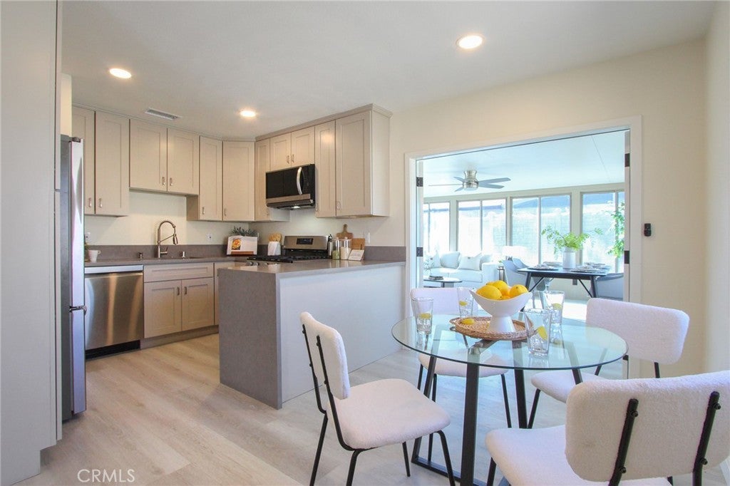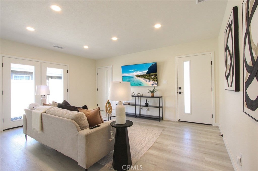 If you want yours to be the home everyone wants to come to for holidays, don't miss this meticulously remodeled four bedroom single story ranch--with a huge additional bonus/family room and private back yard. Your family will thrive in this like-new beauty, with new stainless steel appliances, quartz counters, soft-close cabinets and drawers, doors, windows, luxury vinyl plank flooring, and tankless gas water heater. The large 15' x 18' primary suite has an elegantly tiled walk-in shower, and the main bathroom has a full bath with tub/shower combination. This home was designed for easy upkeep and durable maintenance-free living. It includes thoughtful upgrade details, such as low profile ceiling fans, water resistant cabinet bottoms, convenient power outlets within cabinets, mirrored sliding wardrobe doors, and solid-core interior doors. Most all surfaces and components are new, including a brand new poured concrete driveway, automatic sprinkler system, and elegant tan vinyl fencing. The garage is completely finished, with abundant outlets, a polished concrete floor, and designer doors. All appliances inlcuded, including laundry in convenient hallway closet. Don't miss it, you can move right in!