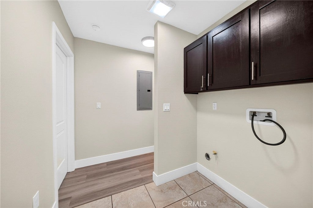 Beautiful 2022-built duplex equipped with built-in solar panels. The front unit (8711) offers 5 bedrooms and 3 bathrooms, including a convenient downstairs bedroom and bathroom—ideal for guests or multi-generational living. The home features newer paint, laminate wood flooring, a bright living room open to the kitchen, and an indoor laundry room. The refrigerator and oven have been recently replaced. Solar panels help reduce utility costs for tenants. The property is privately gated and includes a 1-car garage plus a 3-car driveway. Additional features include separate utility meters, a tankless water heater, and ample street parking near the playground.