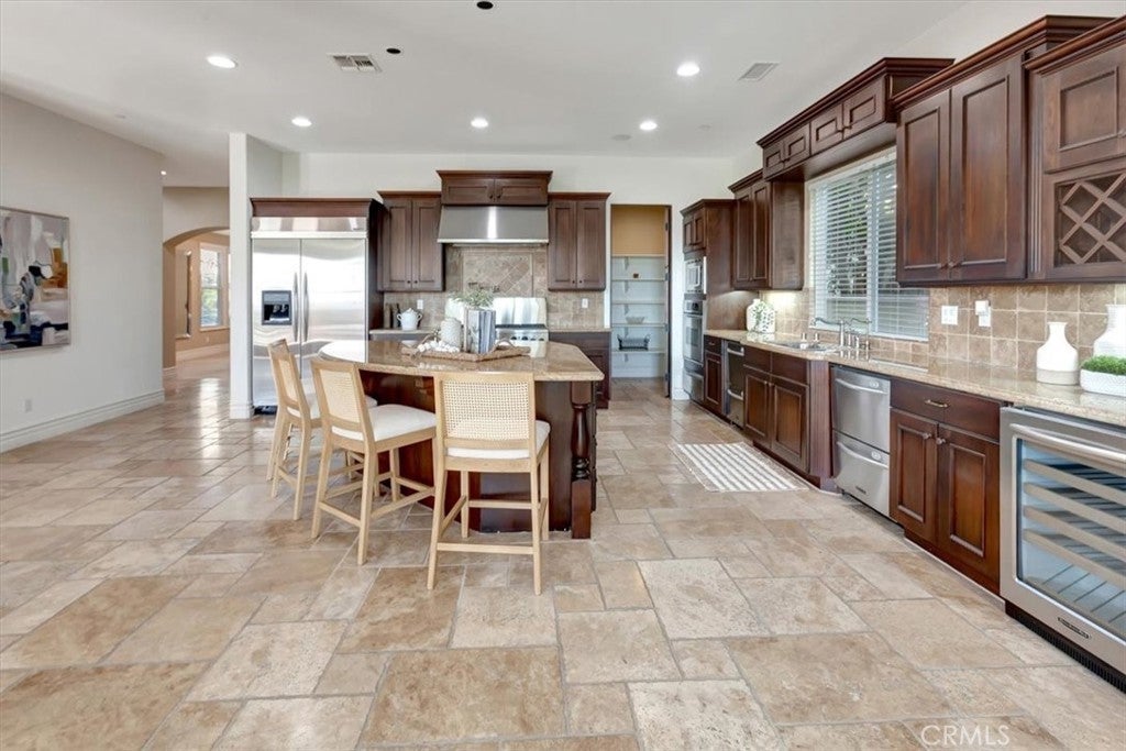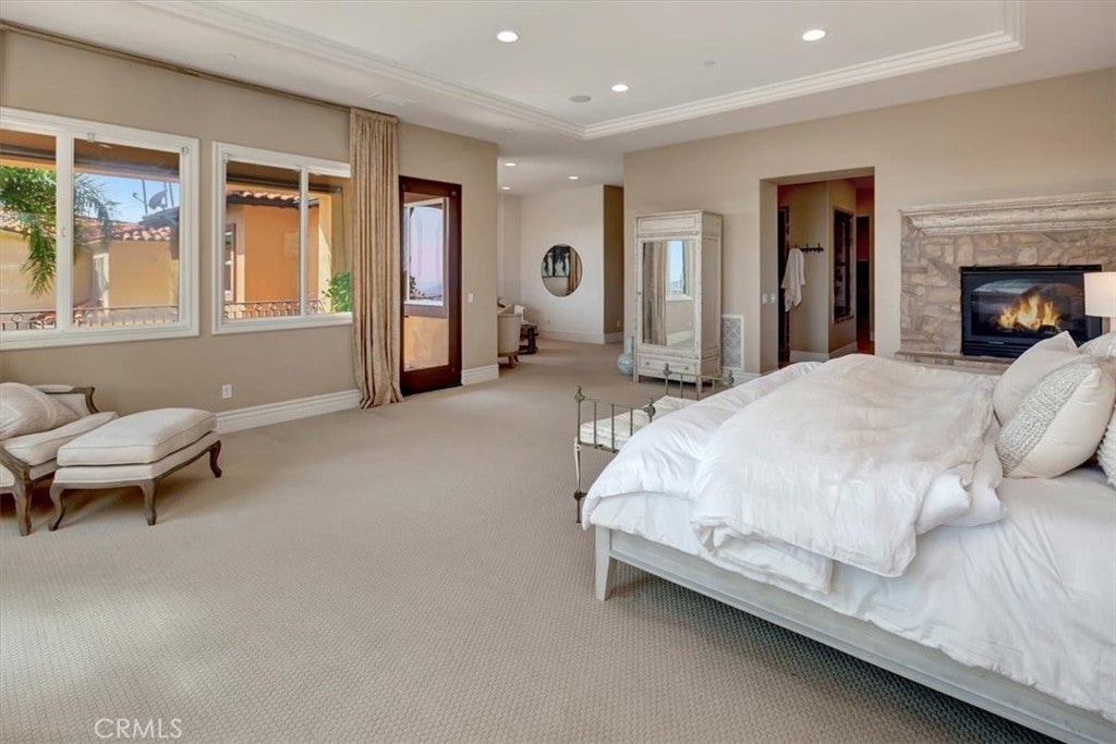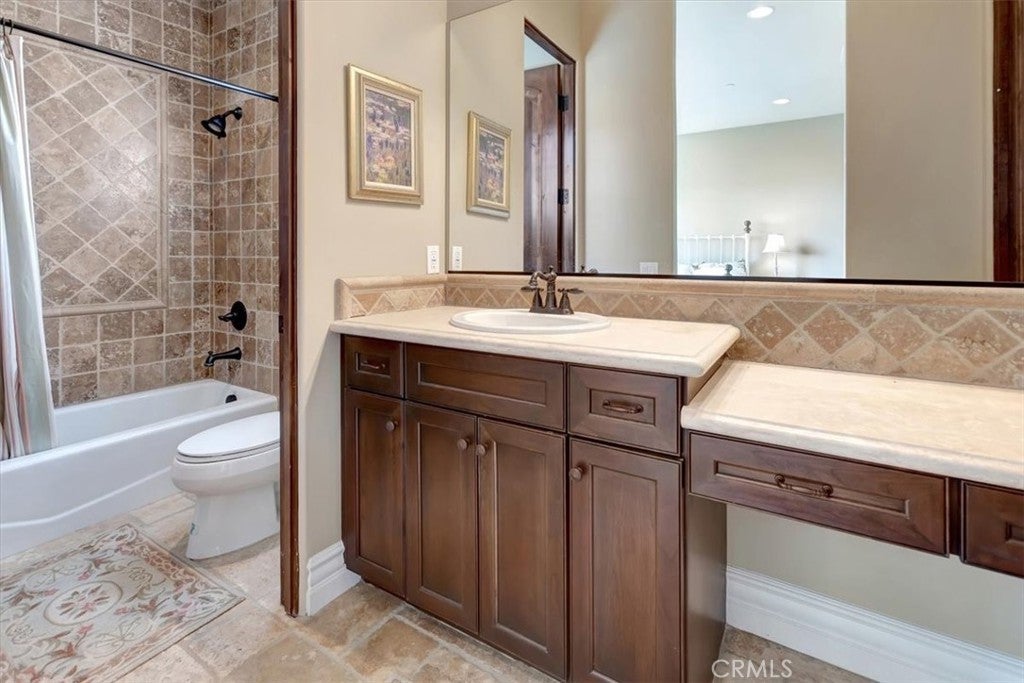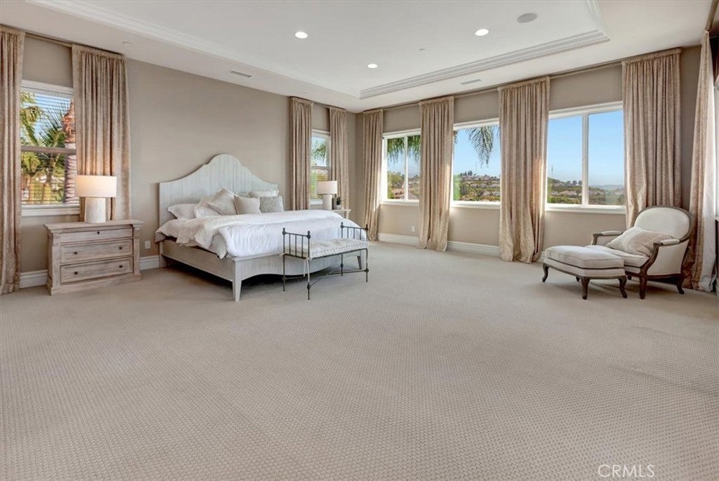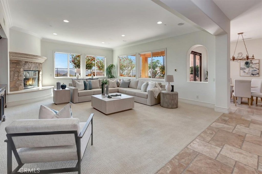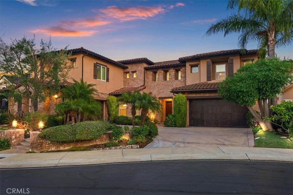 Tuscan Elegance with Panoramic City Views in Guard-Gated Hillcrest. Discover timeless sophistication in this stunning Tuscan-style estate built in 2005, offering 6,468 sq ft with 5 bedrooms, 5.5 baths, and a 4-car garage. The open-concept design connects the family room and gourmet kitchen featuring custom cabinetry, granite counters, prep sink, and professional-grade stainless appliances. A main-floor bedroom with en-suite bath provides ideal guest or multi-generational living. The primary suite includes a sitting area, double-sided fireplace, spa bath, and large deck with sweeping valley views. Enjoy resort-style outdoor living with a sparkling pool, spa, and built-in BBQ island surrounded by lush landscaping. Set on a cul-de-sac within the exclusive Hillcrest guard-gated community, this home defines refined Orange County.