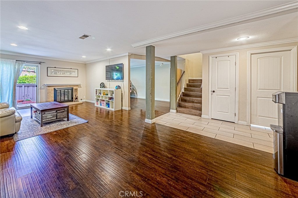 Welcome to the highly sought-after Sunny Ridge community in Fullerton! This inviting 3-bedroom, 2.5-bath home offers a comfortable layout and peaceful greenbelt surroundings. The spacious living room features wood-style flooring, recessed lighting, and a cozy fireplace that opens to a private patio—perfect for relaxing or entertaining. The remodeled kitchen showcases granite countertops, shaker-style cabinets, and stainless-steel appliances, with an adjacent dining area that flows easily to the patio for indoor-outdoor living. Upstairs, the primary suite offers dual closets, an updated bathroom, and tranquil views of mature trees. Additional highlights include dual-pane windows, scraped ceilings, and direct access to a two-car garage with a full driveway, plus nearby guest parking. The Sunny Ridge community provides excellent amenities including a pool, spa, clubhouse, and lush greenbelts. Conveniently located within the top-rated Fern Drive Elementary, Parks Jr. High, and Sunny Hills High School district, and close to Amerige Heights, shopping, dining, and golf courses.