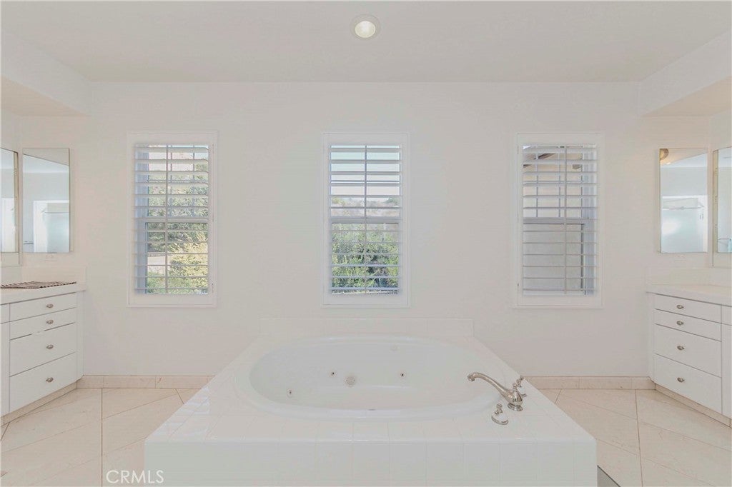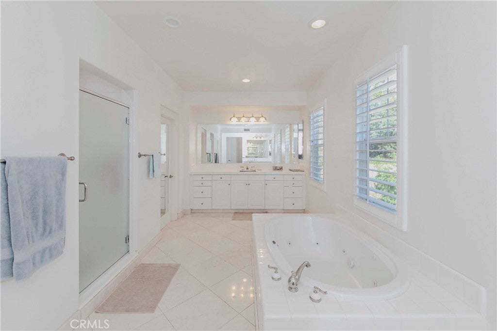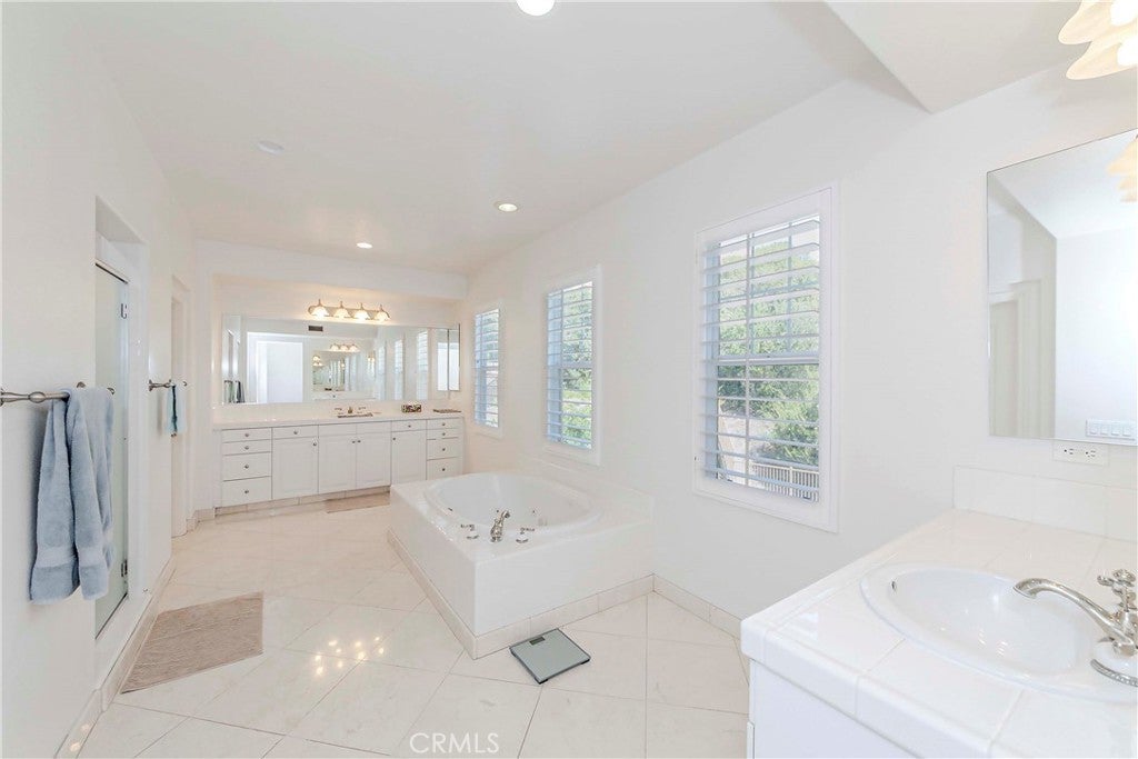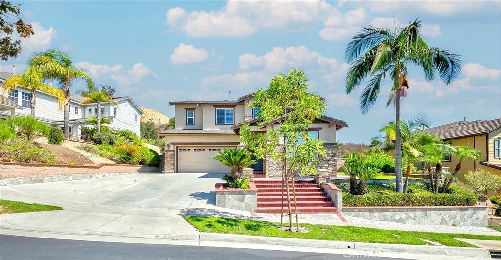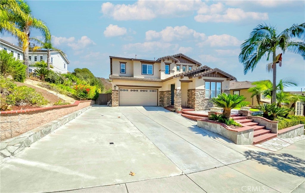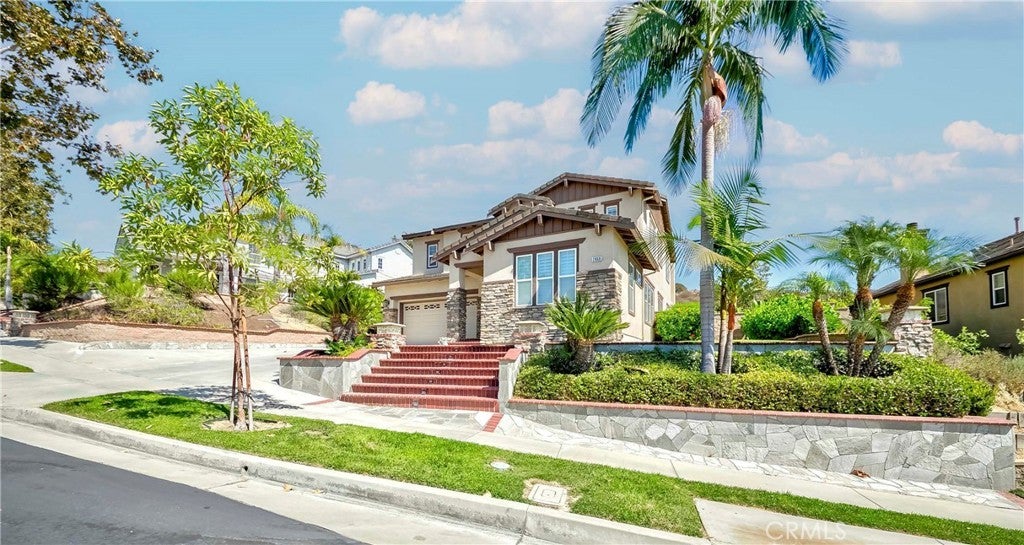 Welcome to this beautiful home in the highly sought-after Hawks Pointe guard-gated community in Fullerton. This spacious residence offers 5 bedrooms and 4 bathrooms, and 3,187 sq.ft of living space on 8,641 sq.ft land. A main level bedroom and a bathroom, and three more rooms with two bathrooms upstairs, along with a master suite with its own walk-in shower and a separate tub and his/her walk-in closets. Double vanities and plantation shutters throughout. Open floor plan with marble flooring throughout, and the kitchen with island and a countertops. Three car garages with EV hook ups built in. move in ready with washer/dryer/refrigerator included in the lease. Walking trails around the well maintained community common area.