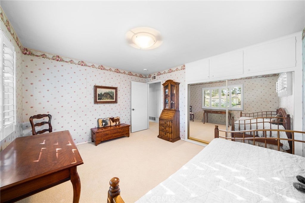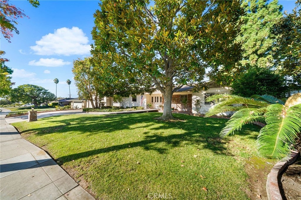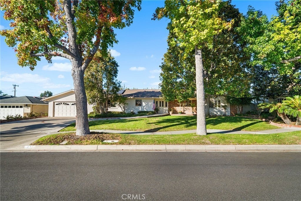 Welcome to Elizabeth Park, built by the Iconic Valentine family in the early 60's, this tract has always been one of the best neighborhoods in Orange! Extra large lot features mature shade trees, a feeling of being away from the big city. The entry has leaded glass door and sidelights that lead to a single story ranch home with a great floorplan. The formal living room has a large sliding door out to the pool and park-like rear yard. There is a mason-built rounded brick fireplace, floor to ceiling with a built-in bookcase/display area. The family room features a large picture window that overlooks the patio and pool. There is an eating area off the kitchen for those stay-at-home meals. The kitchen has the vintage tile that looks like it was installed yesterday with stainless Kitchenaid appliances including a built-in gas range, microwave, electric convection oven and a built-in refrigerator/freezer. This flooplan is classic and functional. There is direct access to an attached 2-car garage with laundry and a utility sink. Behind the garage is a double-door entry to an office and a 3/4 bath, separate from the main house. 3 bedrooms have plantation shutters and custom-built closets with mirrored wardrobe doors. The primary bedroom features an en suite bath with shower, dual sinks and closets. The main bath has a tub/shower accented in tile and glass. The rear yard is a vacation spot all year long. A beautiful pool and spa accented in brick, a custom-built brick BBQ island, seating areas, a covered patio and a 2nd rear yard that is home to the pool equipment, playhouse and garden shed. Make Elizabeth Park your new home.