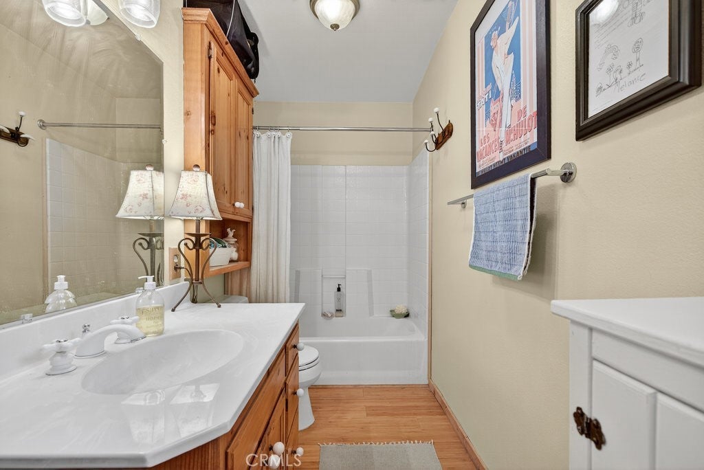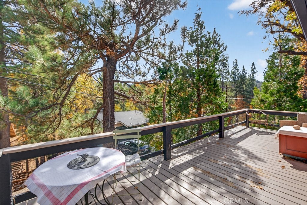Charming upgraded cabin on an expansive one-third-acre lot (over 14,000 sq. ft.) in Arrowbear! This cozy retreat features 1 bedroom plus a sunroom that can serve as a 2nd bedroom, 1.5 baths, and modern upgrades throughout. Enjoy central A/C & heat, stainless steel appliances, bamboo flooring, washer & dryer, and newer interior paint. The property boasts a large, mostly level and usable lot with a gravel driveway sloping downward to the street, plenty of parking, a wooden deck, and a good-sized shed. Perfect for RV parking, boat parking, outdoor fun, entertaining, and snowball fights! Centrally located between Snow Valley Ski Resort, Lake Arrowhead, and Big Bear Lake—this cabin offers the ideal balance of mountain charm and modern comfort. Perfect as a full-time home, weekend getaway, or investment property.