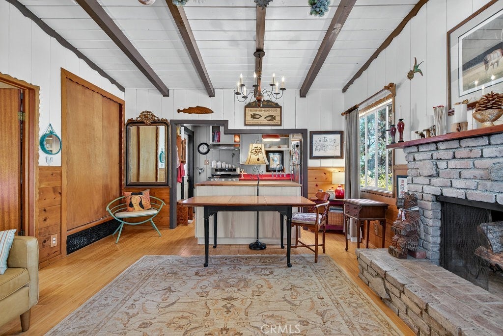 Beamed Ceilings, Eat-in Kitchen, Laminate Counters, Open Floorplan, Partially Furnished, Paneling/Wainscoting, Wood Product Walls, Bedroom on Main Level, Main Level Primary, Primary Suite
