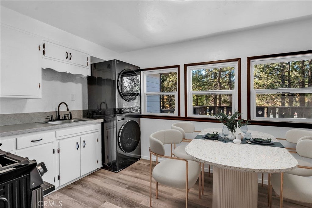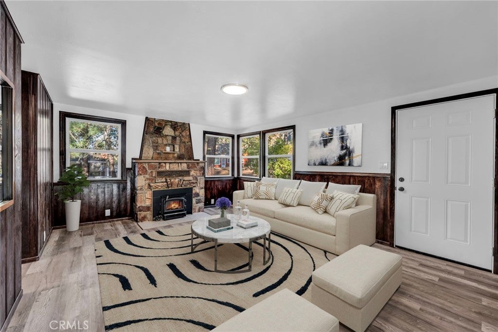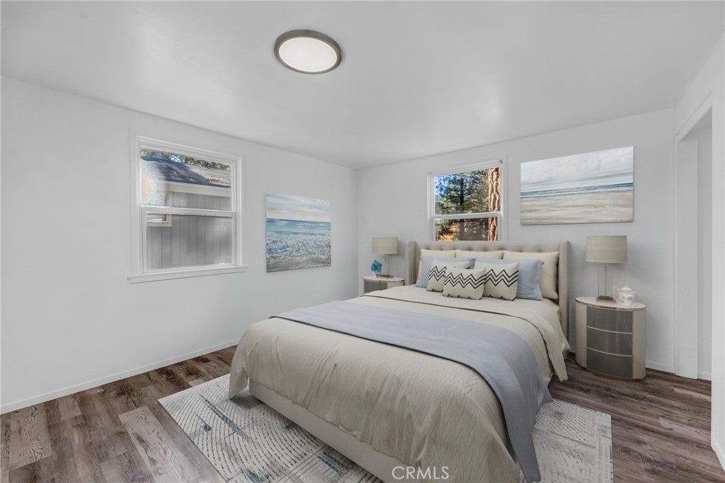 Welcome to 294 Eagle Dr in the Eagle Point neighborhood of Big Bear Lake, CA - with $100K+ in upgrades! Income potential of $49K+ per year, based on surrounding, 2 bed/1 bath AirB&Bs, and for sale for $50K+ below pre-appraised value of $450K for a quick sale! Offers due Monday 11/17 by 5PM. Seller may finance purchase or lease-to-own with the right terms. Incredible opportunity to move in, landlord, or AirB&B this upgraded & turnkey, 2 bedroom, 1 bathroom mountain cabin - with parking for 2 vehicles plus RV parking (or 2 additional vehicles), expansive & elevated back deck, quarry rock fireplace & chimney, 6000 sq foot lot with soaring pines, park/playground frontage, and just 2 blocks from the beach & lake! And with million-dollar homes as neighbors! Upgrades include interior & exterior paint, new high-end stainless-steel appliances (including gas oven/stove & laundry washer/dryer), new scratch-resistant luxury-vinyl plank flooring throughout, new plumbing - mainline & fixtures including toilet, new grounded outlets, new recessed & evening lighting - inside & out, new wood sanding & staining - inside & out, new concrete foundation walls & surrounding cement including new stairs & railing, and newer roof, water-heater, and double-paned windows. Expansive storage & workshop space under the home, as well as additional enclosed storage under the deck for equipment and/or park, lake & snow toys. Make your downpayment back in 3-4 years with AirB&B, while enjoying the incredible amenities of the Eagle Point peninsula and the surrounding community. All available within 2 blocks from the property: large park with trees and open meadows, 2 playgrounds, swimming beach & fishing lake, sports courts & fields (sand volleyball, basketball, tennis, pickleball, softball, baseball), and free city trolley to the new Big Bear Zoo, 9-Hole Golf Course & Clubhouse, Big Bear Village, Bear Mountain & Snow Summit Ski Resorts, Marina, the North Shore & more! Host visitors or personally enjoy one of Southern California's only 4-season resorts with watersports - boating, fishing & swimming; snowsports - skiing, sledding, tubing, snowboarding, skating & snowshoeing; mountain sports - biking, birding, & hiking; movie theater, music venues, restaurants, shopping, and year-round events & festivals. Per appraiser, this property is unmatched in upgrades compared to other similar cabins throughout Big Bear Lake. View and make your offer ASAP! This property will sell quickly.