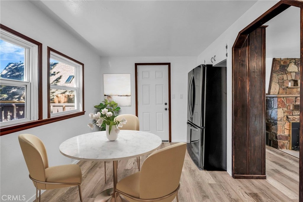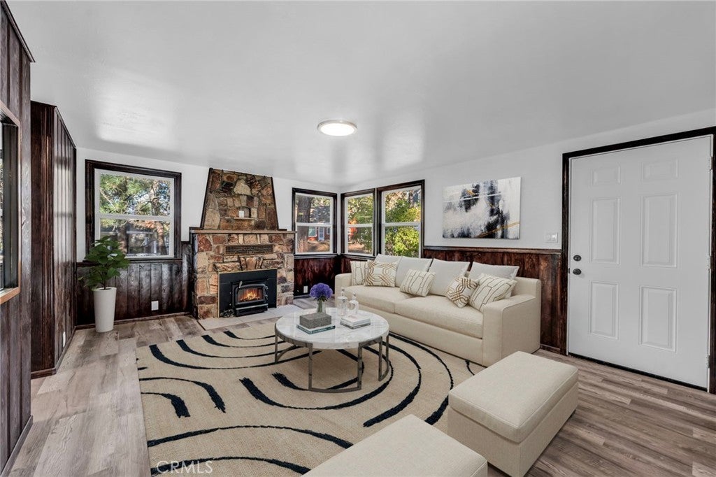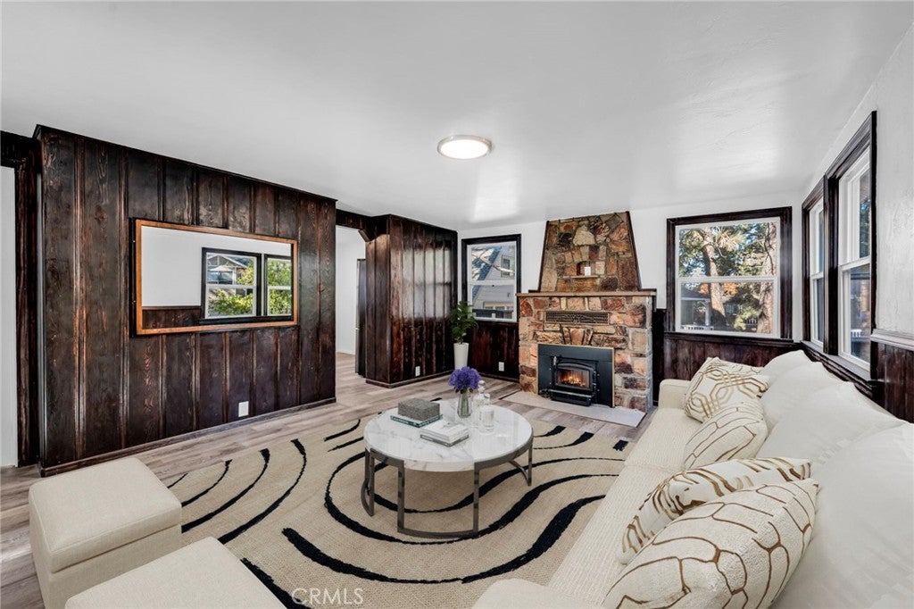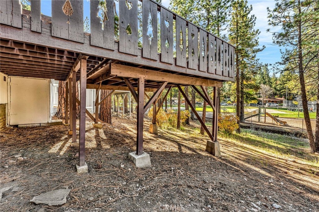 Welcome to 294 Eagle Dr in the Eagle Point neighborhood of Big Bear Lake, CA! Incredible opportunity to move in, landlord, or AirB&B this upgraded & turnkey, 2 bedroom, 1 bathroom mountain cabin - with parking for 2 vehicles plus RV parking (or 2 additional vehicles), expansive & elevated back deck, quarry rock fireplace & chimney, 6000 sq foot lot with soaring pines, park/playground frontage, and just 2 blocks from the beach and lake! Income potential of $49K+ per year, based on surrounding, 2 bedroom, 1 bathroom AirB&Bs, and for sale for $50K+ below pre-appraised value of $450K for a quick sale! And with million-dollar homes as neighbors! Offers due Monday 11/10 by 5PM. Seller may carry purchase or lease-to-own with the right terms. All new everything including new interior & exterior paint, new high-end stainless-steel appliances (including gas oven/stove & laundry washer/dryer), new scratch-resistant luxury-vinyl plank flooring throughout, new plumbing - mainline & fixtures including toilet, new grounded outlets, new recessed & evening lighting - inside & out, new wood sanding & staining - inside & out, new concrete foundation walls & surrounding cement including new stairs & railing, and newer roof, water-heater, and double-paned windows. Expansive storage & workshop space under the home, as well as additional enclosed storage under the deck for equipment and/or park, lake & snow toys. Make your downpayment back in 3-4 years with AirB&B, while enjoying the incredible amenities of the Eagle Point peninsula, as well as the surrounding community. All available within 2 blocks from the property: large park with trees and open meadows, 2 playgrounds, swimming beach & fishing lake, sports courts & fields (sand volleyball, basketball, tennis, pickleball,, softball, baseball), and free city trolley to the new Big Bear Zoo, 9-Hole Golf Course & Clubhouse, Big Bear Village, Bear Mountain & Snow Summit Ski Resorts, Marina, the North Shore & more! Host visitors or personally enjoy one of Southern California's only 4-season resorts with watersports - boating, fishing & swimming; snowsports - skiing, sledding, tubing, snowboarding, skating & snowshoeing; mountain sports - biking, birding, & hiking; movie theater, music venues, restaurants, shopping, and year-round events & festivals. Per appraiser, this property is unmatched in upgrades compared to other similar cabins throughout Big Bear Lake. View and make your offer ASAP! This property will sell quickly.
