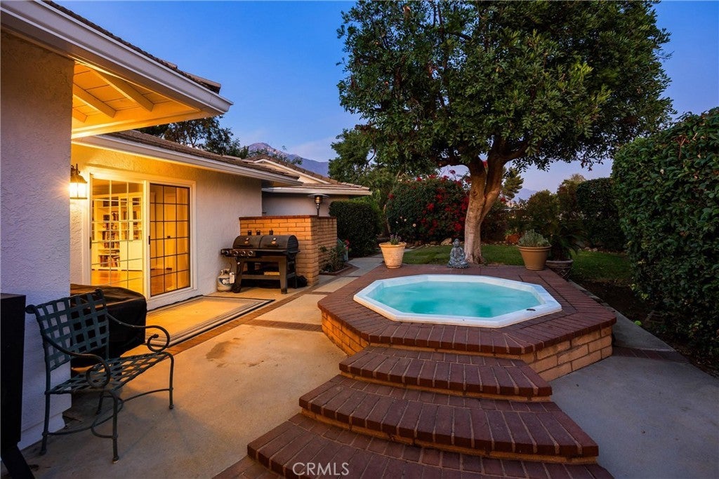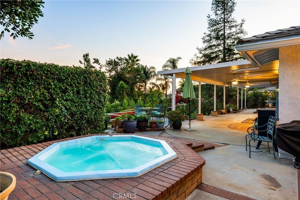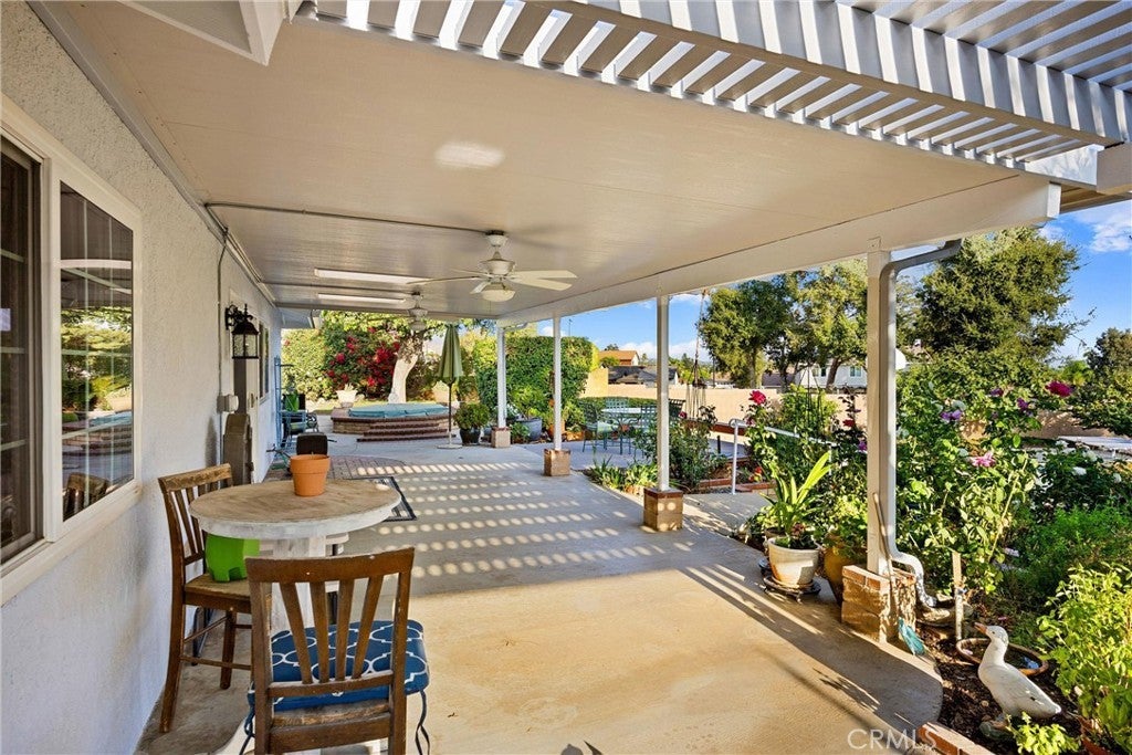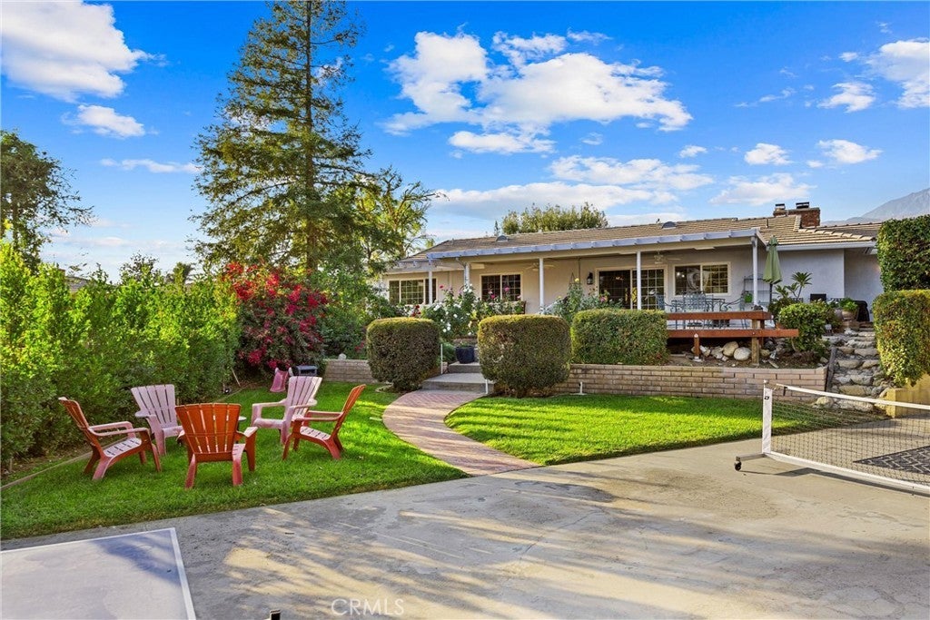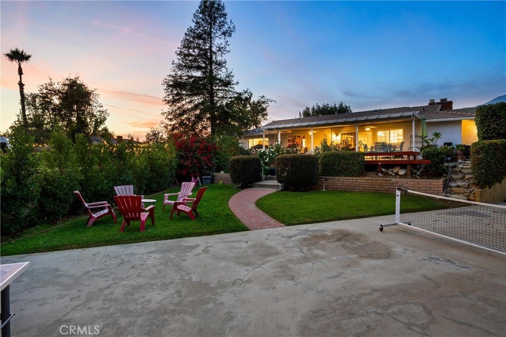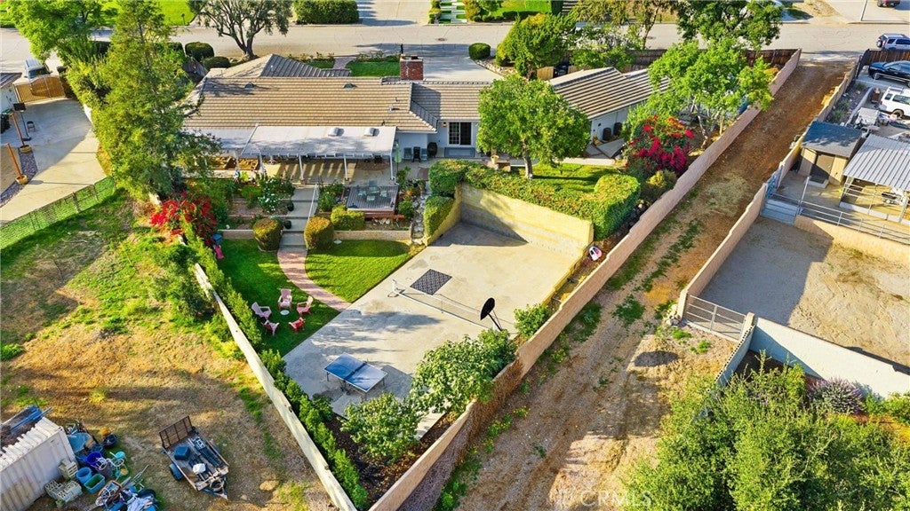 Charming Single-Story Ranch Home with Stunning Views, Sports Court, and Endless Possibilities! Welcome to this beautifully maintained single-story ranch home that perfectly blends comfort, functionality, and potential. Situated on a half acre horse property with the bridle trail running conveniently along the side, this home offers a rare combination of country charm and modern amenities. Enjoy mountain views from the front and sparkling city light views from the backyard, providing the best of both worlds—peaceful scenery by day and a twinkling skyline by night. Step inside to find hardwood floors throughout and upgraded vinyl flooring in the master, creating a warm and inviting atmosphere. The indoor laundry room adds convenience, while the three-car garage with RV parking provides ample space for vehicles, toys, and storage. The home features a tile roof with brown shake detail and includes an in-ground spa with cover, perfect for relaxing evenings under the stars. Outdoors, discover your own sports court, complete with basketball, tennis, and pickleball—ideal for recreation and entertaining. The large backyard also offers room to build an ADU or a pool, allowing you to customize the property to fit your lifestyle. Enjoy your personal mini orchard with avocado, fig, lemon, lime, peach, Santa Rosa plum, and apricot trees, plus a raised garden bed ready for your favorite vegetables and herbs. Whether you’re looking for a peaceful retreat, an equestrian haven, or a home with expansion potential, this property delivers exceptional value and endless opportunity.