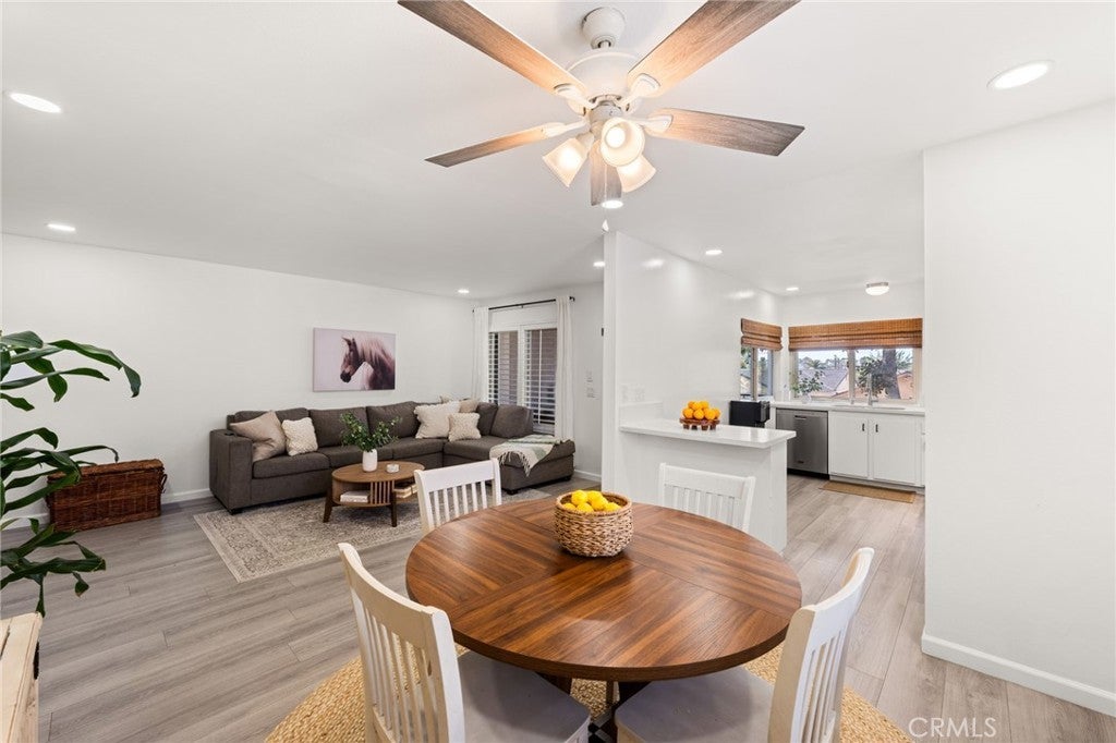 This beautifully remodeled home offers a serene, peaceful living environment with skyline and treetop views. New wood tone flooring meanders throughout all the living spaces and is accented with crisp new baseboard throughout. New paint to entire interior with brand new hardware to all doors and cabinets plus smooth ceilings with new recessed lighting, plantation shutters to all rooms with brand new custom bamboo roman shades in the kitchen, and dual pane vinyl windows through out the entire home add sophistication and elegance to this clean and airy home . The large kitchen has freshly painted cabinetry with brand new hardware, sleek quartz countertops, lovely stainless steel appliances and a delightful corner window which looks out over the neighborhood. The spacious bathroom has been completely remodeled with new European oak cabinetry, an extra deep bathtub with shower above, gorgeous vertically installed tile, new lighting, and darling recessed shelving. Seller recently replaced all the attic insulation as well as ducts and vents.. all work was permitted. All of this plus private indoor laundry room make this property a dream come true! The HOA recently replaced the garage door and opener to the private 1 car garage. The property boasts ample street parking, a private garage and one assigned parking space. Community amenities include and abundance of open space with lovely landscape and sprawling lawns, plus an oversized community pool!. Schools are in the sought after Placentia Yorba Linda School District. Super close to the 55 and 91 fwys as well as shopping and dining in Anaheim Hills...Be ready to fall in love!