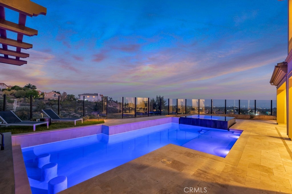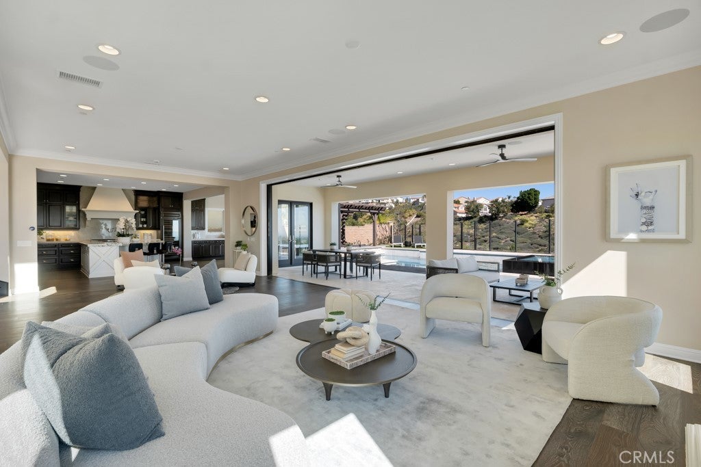 Option to purchase subject to the existing conventional loan with a 4.375% rate!! Call listing agent for more details. Stunning luxury estate with panoramic views, ideally positioned at the end of a peaceful cul-de-sac in the exclusive, 24-hour guard-gated Westcliffe at Porter Ranch community. One of the larger properties in the neighborhood, this impressive Spanish Colonial Palisades model by Toll Brothers offers 5,710 square feet of refined living space, featuring 5 bedrooms, 5.5 baths, and an additional flexible room located just behind the kitchen. Fully reimagined in 2025 with a complete interior renovation and landscape redesign, the home showcases dark-stained white oak hardwood floors throughout, natural stone countertops, and luxury appliances from Sub-Zero and Wolf. Expansive multi-panel glass doors open to the patio and courtyard, creating a seamless indoor/outdoor flow ideal for entertaining. The newly completed pool, spa, and outdoor kitchen (finished September 2025) are surrounded by travertine pavers, lush softscaping, and wireless automated pool equipment, delivering a true resort-style experience in a private, tranquil setting. Also for Lease at: $17,500 a month (will consider lease w/ purchase option)