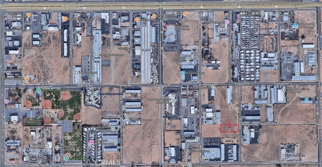 Prime Commercial/Industrial Lot 0.76 Acre • Level • Ready for Development • Survey Paid by Seller! Exceptional opportunity to own a 0.76-acre commercial/industrial vacant lot in the highly desirable Apple Valley industrial corridor. Positioned among established businesses, warehouses, and commercial operations, this flat and buildable parcel offers outstanding potential for commercial use, light industrial facilities, contractor yards, storage, manufacturing, or long-term investment (buyer to verify permitted uses). The property features street frontage, easy access to Powhatan Rd, Navajo Rd, and Central Rd, and is only minutes from major routes including Highway 18. Surrounded by a strong mix of commercial and industrial neighbors, the site provides excellent visibility and accessibility for future development. A professional survey will be provided at seller’s expense, giving buyers a clear advantage and smoother planning process. Whether you’re an investor, developer, or owner-user, this is a rare chance to secure prime industrial land in a growing High Desert market.