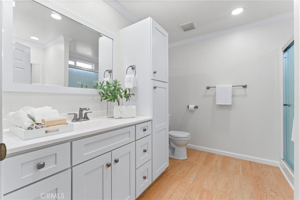 Beautiful, manufactured home in the Senior Community of Lake Park Santa Ana North! This updated home is located in a prime location in the community, being close to the clubhouse, pool, spa, exercise room, library, billiard room and guest parking. The open floor plan with a spacious living area is perfect for entertaining and relaxation. This home features 2 bedrooms, 2 bathrooms plus a laundry/utility room with room for a full size washer and dryer. The primary bedroom features a large walk in closet, a glass door out to the patio and an en-suite with a walk in shower and dual vanity sinks. This home is ready for a new buyer with fresh interior paint and a new roof. The attached 2 car garage offers convenient direct access into the kitchen. Close to freeways, shops and dining. Don't miss out on this opportunity to live in a vibrant and welcoming community.