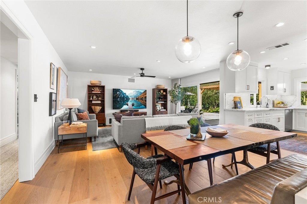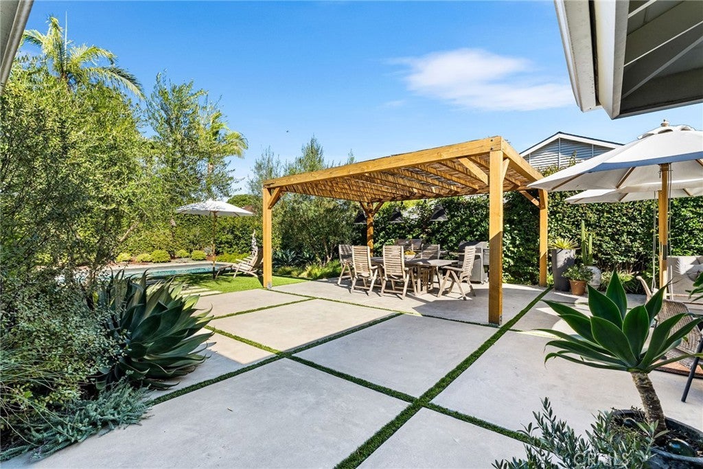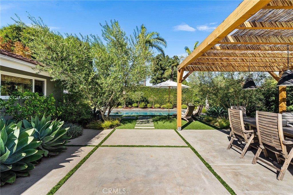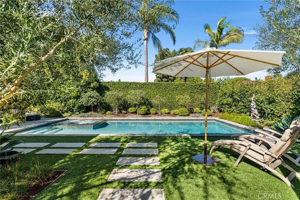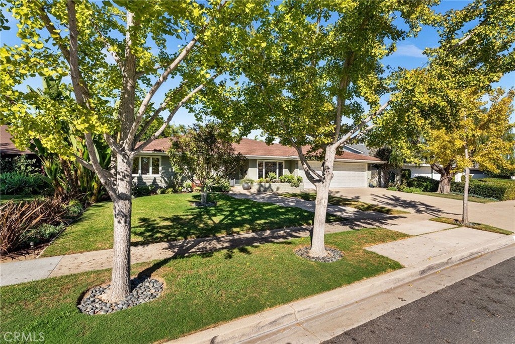 Step into your dream home — a single-story showpiece offering 2,330 square feet of designer living on a 10,375-square-foot flat lot in one of Tustin’s most desirable neighborhoods. This move-in-ready single-story blends modern sophistication with a fun mid-century vibe and even offers room for future expansion. Inside, discover bright open spaces with designer finishes throughout — from the warm wood floors to the statement lighting and marble accents. The bright living room with a chic fireplace and dining area overlooking the front garden set the tone for effortless, elevated living. The gourmet remodeled kitchen impresses with custom cabinetry, marble counters, a 6-burner Wolf range and oven, stainless appliances, and a sleek pass-through window that opens to the entertainer’s backyard. The kitchen flows seamlessly into the inviting family room with a built-in banquette, perfect for casual dining or cozy gatherings. Three generous bedrooms and 2.5 spa-inspired bathrooms shine with the latest designer details. The primary bedroom complete with a walk-in closet and new glass patio doors open to your backyard oasis remodeled within the last five years. The professionally landscaped entertainer’s paradise features a sparkling pool and spa, multiple patios, a fire pit lounge, and a versatile yard designed for flex space or room to expand. Whether you’re hosting a dinner party or a weekend poolside hangout, this yard delivers space, style, and privacy. Bonus features include an indoor laundry room, 3 car garage with direct access, and top-rated Tustin schools including Foothill high school. Welcome home to California living at its finest.
