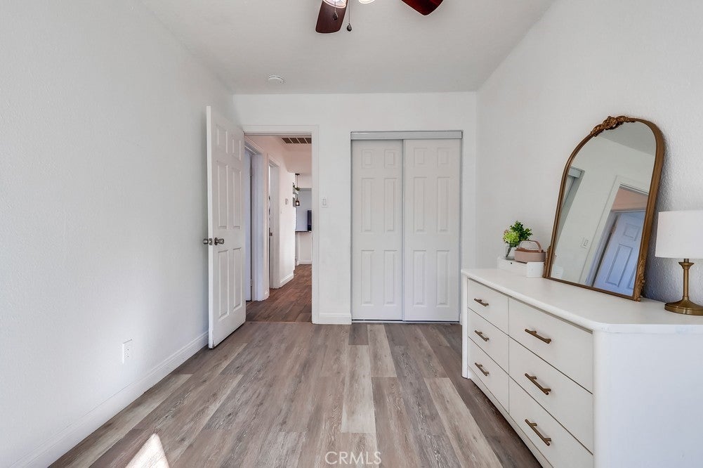 Fresh, clean, and move-in ready! This well-loved home has been cared for by the same owners for the past 11 years and offers an excellent alternative to condo, apartment, or mobile home living — no HOA fees and no shared walls. Inside you’ll find fresh interior paint, recessed lighting throughout, six-panel interior and closet doors, wood-look tile flooring in the main living areas, and vinyl flooring in the bedrooms. The kitchen has been updated with granite countertops, and the bathroom has been remodeled with modern finishes. Additional features include central heat and air conditioning, dual-pane vinyl windows, an inside laundry room, and a security screen door at the entry. The low-maintenance exterior offers paved front and back yards, a covered patio, and two storage sheds. Enjoy direct garage access, drywalled garage walls, and driveway parking behind secure rolling gates. Located near shopping, restaurants, and freeway access. This home shows true pride of ownership and is ideal for first-time buyers, downsizers, or investors looking for a solid rental property.