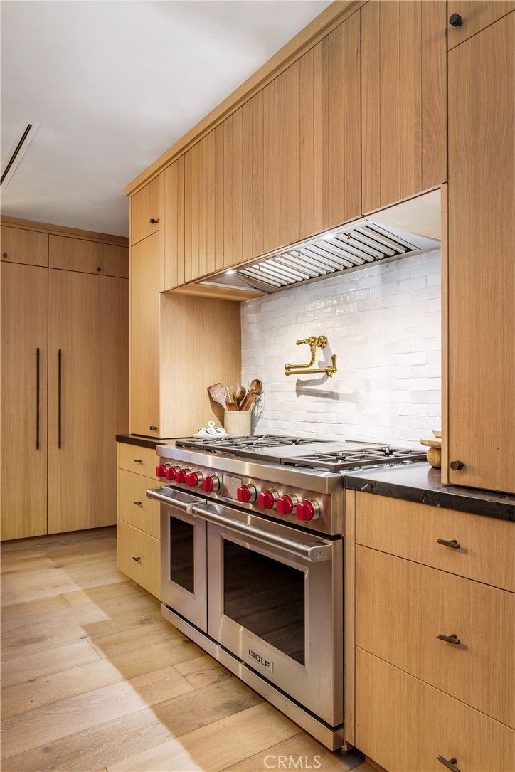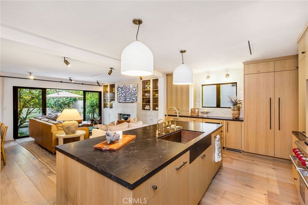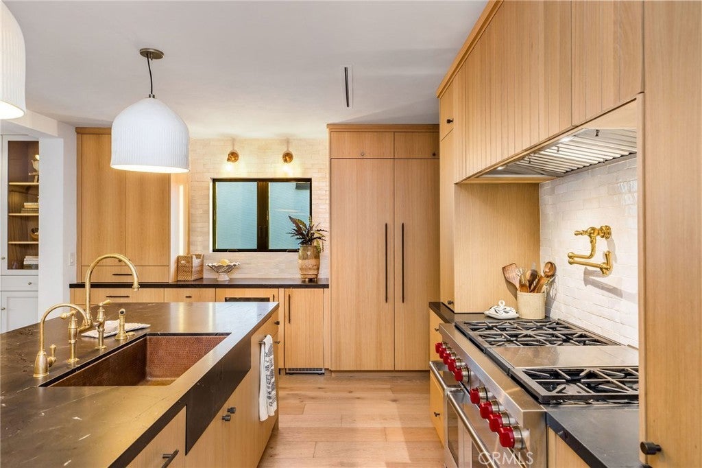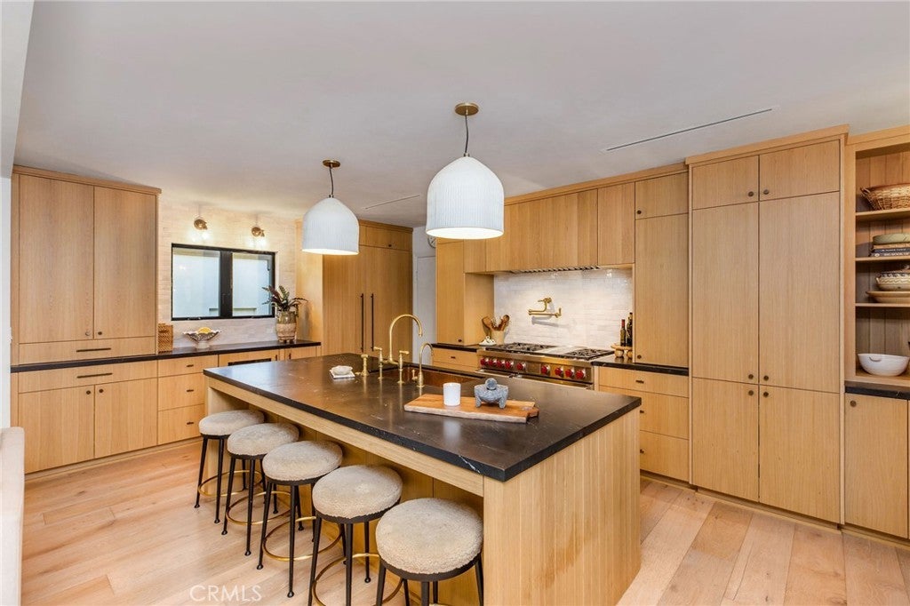 Welcome to 624 Sea Breeze Drive, a 4-bedroom, 2-bathroom, 1,633 square-foot masterpiece with a nod to the Japandi style, meticulously renovated from the ground up in 2024. The architectural essence seamlessly blends Japanese minimalism with Scandinavian warmth, offering a serene and luxurious living experience. Step inside to discover engineered white oak floors that flow throughout, complemented by antique-inspired French limestone in the entryway and bathrooms, and handcrafted Moroccan zellige tile in the kitchen and bathrooms. The home’s limewash paint and smooth plaster fireplace create a soft, organic ambiance, while premium Millboard siding, flagstone pavers, and fireplace exterior elevate the curb appeal. The heart of the home is a chef’s dream kitchen, featuring custom rift white oak cabinetry, quartzite countertops with mitered apron-front stone, and a hammered copper sink. High-end appliances include a 48” Wolf range, paneled Fisher & Paykel refrigerator/freezer, Scotsman pebble ice maker, Sub-Zero beverage fridge, Miele dishwasher, and instant-hot water faucet. Custom ceramic pendant lights and a Perrin & Rowe bridge faucet add timeless elegance. Every detail has been thoughtfully curated: custom white oak fluted interior doors, Emtek hardware, unlacquered brass Cal faucets, and Pinky’s Iron Dutch doors at the entry and garage. Handmade light fixtures from Mullan in Ireland illuminate the space with artistry. The home is equipped with all-new, state-of-the-art systems for modern living: copper/PEX water lines, a Navien tankless water system with recirculating hot water, a Flagship whole-house water filter, Milgard Tuscany series double-pane windows, and a Presidential Shake 50-year shingle roof. New HVAC, sewers, venting, and non-toxic Rockwool insulation in the living spaces ensure efficiency and comfort. All walls and ceilings feature new drywall, with every wall taken down to the studs for a flawless finish. Each bedroom boasts custom closet systems and woven wood shades, while the living room and primary suite are adorned with custom European linen drapery. The garage is a standout with insulated walls, a new door and cabinetry for ample storage, and an oversized sink and laundry area. Outside, brand-new turf and landscaping create a low-maintenance oasis, with gas and sewer hookups ready for an outdoor kitchen. This home is a rare blend of style, craftsmanship, and functionality, designed for those who appreciate the finer things in life.