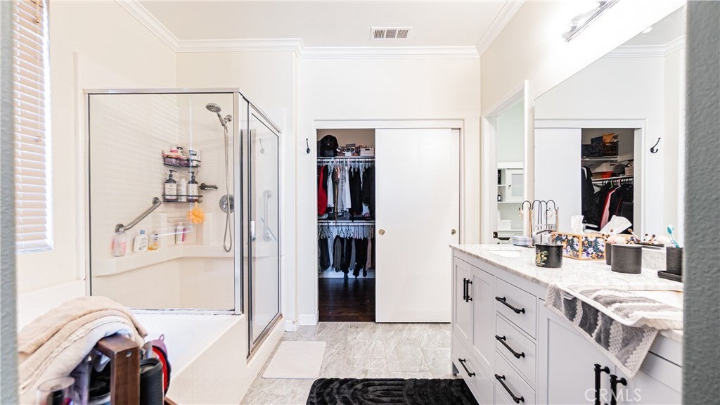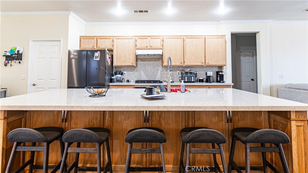 Step into this beautifully maintained four-bedroom, two-bathroom home with an additional office/den that can easily be transformed into a fifth bedroom, perfect for your growing needs. Built in 2006 and spanning approximately 2,343 sq. ft. on a 5,998 sq. ft. lot, this home perfectly balances modern comfort with timeless style. As you enter, you’re welcomed by an inviting foyer that opens to a spacious, light-filled living area, ideal for entertaining or cozy nights in with family and friends. The open-concept design flows seamlessly into the kitchen, featuring contemporary appliances, ample counter space, and a large island that makes meal prep and gatherings a breeze. The primary suite feels like your own private retreat, complete with a luxurious en-suite bathroom showcasing dual sinks and a beautifully tiled shower. The additional bedrooms are generously sized, offering flexibility for guests, a home office, or a creative space. Outside, the backyard invites you to relax and unwind, whether you’re hosting weekend barbecues or simply enjoying a peaceful evening under the stars. Nestled in a quiet cul-de-sac within a welcoming neighborhood, this home is just minutes from parks, shopping, restaurants, and schools. And the best part? No HOA fees saving you thousands every year! Don’t miss your chance to make this beautiful home yours. It’s the perfect blend of comfort, convenience, and California living.