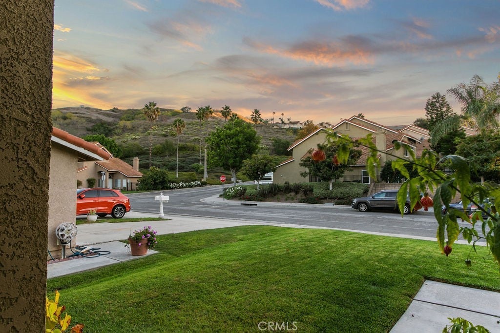 A wonderful view-home within The Palms - a safe and peaceful community, high in the hills of Anaheim, surrounded by views, hiking trails and nature. Enter to the fire-side Living room with high ceilings for that large open feel. The Kitchen opens to the family room which nicely-flows to the backyard, perfect for your indoor/outdoor entertaining. Three spacious bedrooms upstairs including the Primary bedroom with views. The home is in very nice, pride of ownership condition. Hard-surface flooring throughout. Includes refrigerator, washer & dryer and full-house water filter. Great schools. Close-by golf, parks, hiking trails, horse trails, Saddle Club, Nature Center, restaurants, shopping and entertainment. Quiet neighborhoods, beautiful hills and a constant breeze all provide that feeling of being away from it all while still being close to so much. A wonderful place to live!
