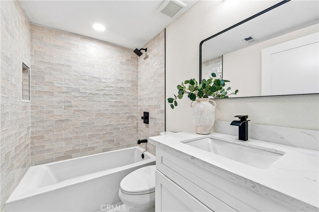 Welcome to 4525 Via De La Plaza, nestled in one of Yorba Linda’s most desirable communities. This beautifully fully remodeled home offers modern upgrades and thoughtful details throughout.Enjoy peace of mind with a newly installed cool-rated roof (with permits), luxury waterproof laminate flooring, and a fully remodeled kitchen featuring white shaker cabinets, pantry with pull-outs, quartz countertops, an air-fryer stove, and a sleek below-counter microwave. Additional upgrades include solid core doors, new baseboards and casings, fresh interior and exterior paint complemented by smooth ceilings. The bathrooms have been stunningly updated with dual sinks and frameless glass enclosures, offering a spa-like experience. Vaulted ceilings, new dual-pane windows, and a large slider invite an abundance of natural light, creating an airy and inviting atmosphere. The home also features a newer water heater and all-new shut-off valves for added convenience. Situated on a quiet cul-de-sac with minimal traffic, this charming home rests on a spacious lot with potential for a pool or ADU—an ideal blend of comfort, functionality, and future opportunity. Its prime location offers walking distance to top-rated schools, parks, shopping, and dining.
