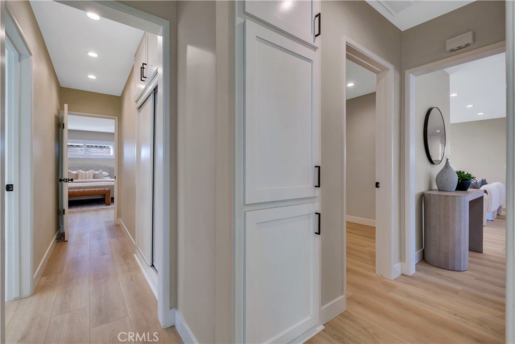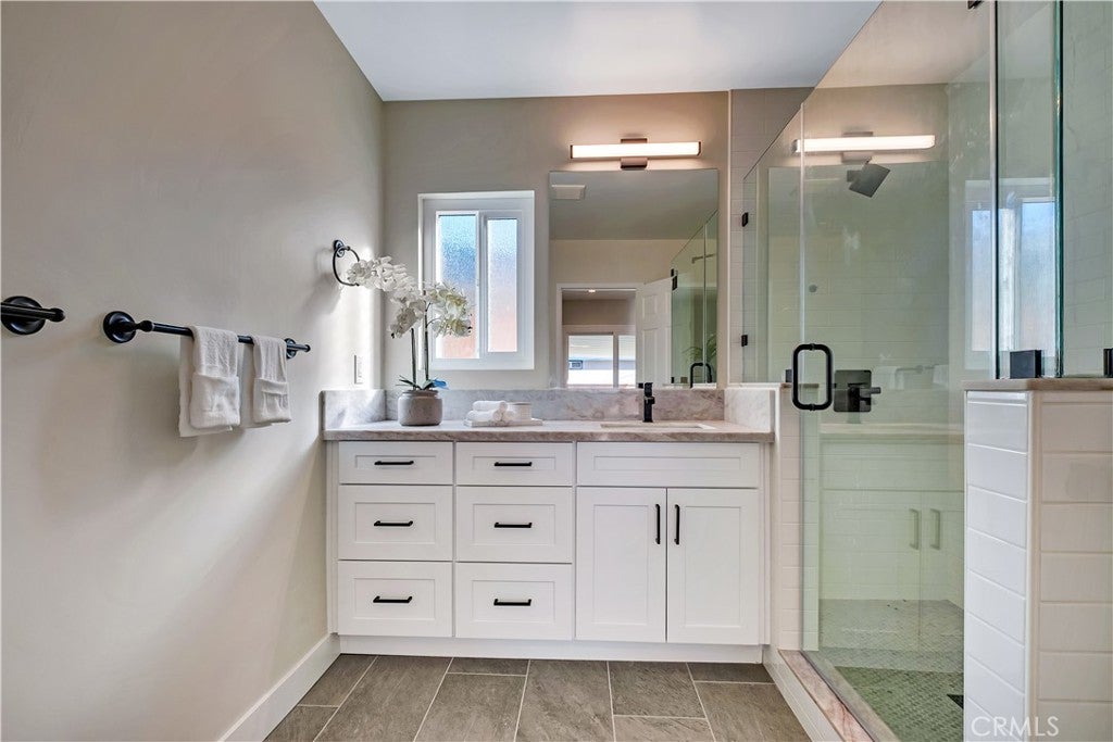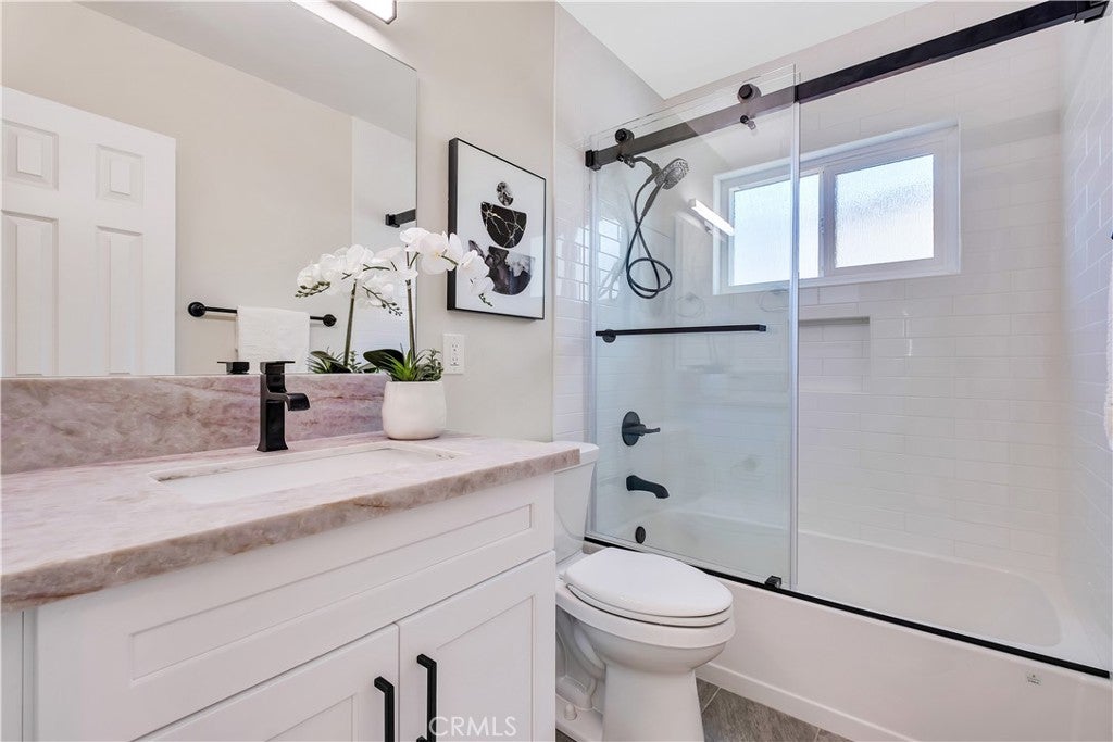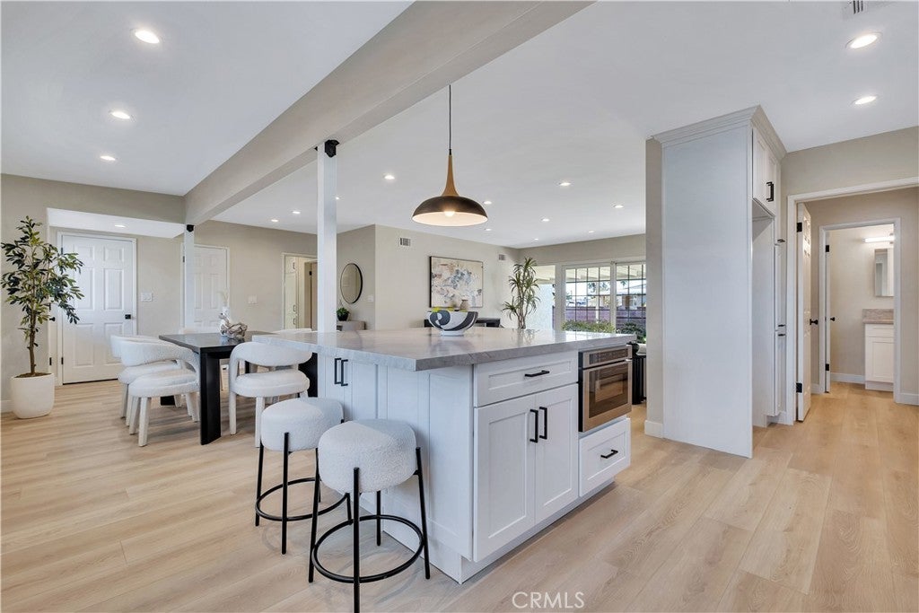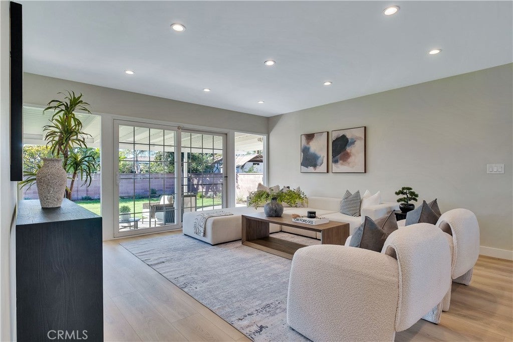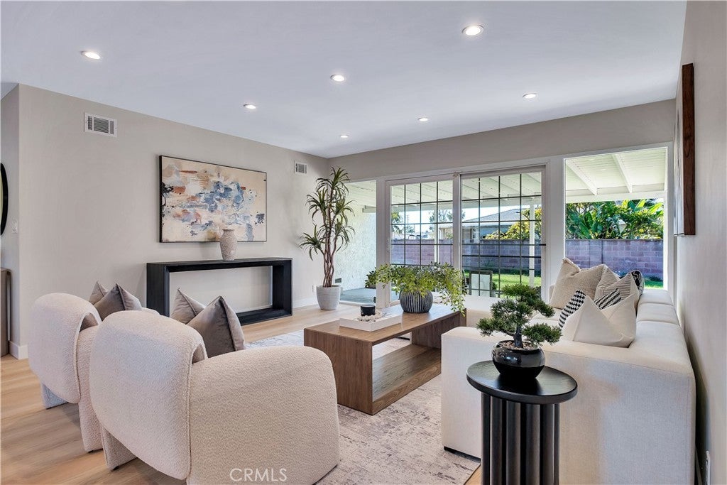 Beautifully Remodeled Anaheim Home. Welcome to this stunning, fully remodeled single-family home in the heart of Anaheim. Offering 4 bedrooms and 2.5 bathrooms, this home perfectly blends modern design with comfort and functionality. Step inside to find an open-concept floor plan where the main living area is filled with natural light and features large windows that create a bright, inviting atmosphere. The home showcases new white oak laminate flooring, recessed lighting throughout, and a seamless flow for everyday living or entertaining. The kitchen is a true showpiece with Taj Mahal quartz countertops, a large island, and custom cabinetry. The spacious primary suite boasts custom built-in closet cabinetry and a luxurious en-suite bathroom with elegant finishes. Every detail has been thoughtfully updated — from the new roof to upgraded plumbing and electrical systems — ensuring peace of mind and modern comfort. Enjoy Southern California living outdoors with a large grassy yard, large covered patio, and two-car garage. Conveniently located near parks, schools, and shopping, this light-filled Anaheim gem is move-in ready.