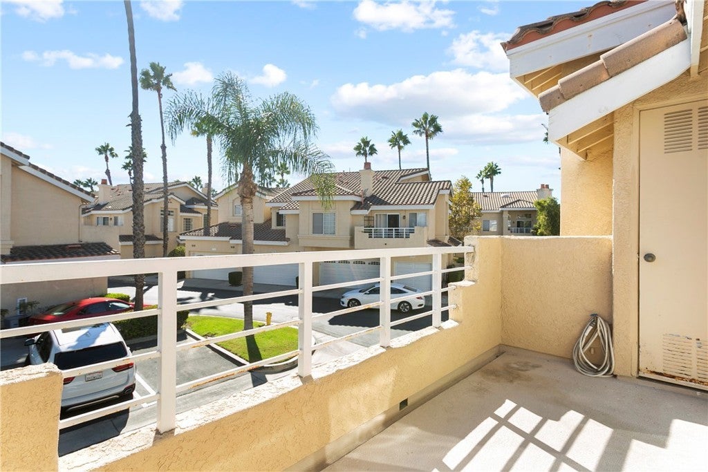 This beautifully maintained Del Prado townhome offers the perfect blend of comfort, style, and convenience. Located on an upper carriage end unit, you’ll enjoy peace and privacy with no one above or below. The corner location with expansive windows fill the home with natural sunlight throughout the day. Step inside to an elegant open-concept floor plan with soaring vaulted ceilings. The spacious living area features a cozy fireplace and opens to a private balcony overlooking the neighborhood—perfect for relaxing or entertaining. The kitchen offers ample cabinet space along with a newer microwave and dishwasher. The generous bedroom includes a walk-in closet with built-in organizers, while the bathroom boasts a dual sink vanity. Additional highlights include recessed lighting, inside full-size laundry, and an attached direct-access one-car garage. Del Prado residents enjoy resort-style amenities, including two pools, two spas, greenbelts, and a tot lot. Ideally located near Rancho Niguel Shopping Center with restaurants, shops, and a movie theater, with easy access to Toll Road 73 and nearby freeways. Welcome Home!