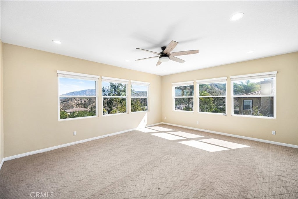 Luxury estate property for lease in the highly coveted guard-gated community of Summit Pointe Estates. This Standard Pacific largest plan 4 is one of the most highly desired floorplans within the community. A beautifully remodeled kitchen with quartz counters, stainless steel appliances and new cabinetry is open to the spacious family room with views of the canyons, mountains and hills with twinkling lights. Soaring ceilings throughout the main level and walls of windows seamlessly bring in the natural light and blend the outdoor entertainment areas. The main floor bedroom with private bathroom is always a highly desired feature. The main floor is complete with newer flooring and neutral carpeting. The primary suite offers dual walk-in closets, dual vanities and a large soaking tub as well as serene views of the surrounding hills. Three additional bedrooms with one a jack and jill bedroom, and an open office or media room as well as a loft area complete the second level. The pool and spa have been newly upgraded with pebble tech surfaces. All new exterior painting and newly installed artificial turf make this a perfect home for resort living. Encompassing Stunning Views of the surrounding hills and mountains from nearly every room and offering both a ample patio entertaining area plus a large grass areas that can be gated from the pool, this home offers executive living and a peaceful environment.