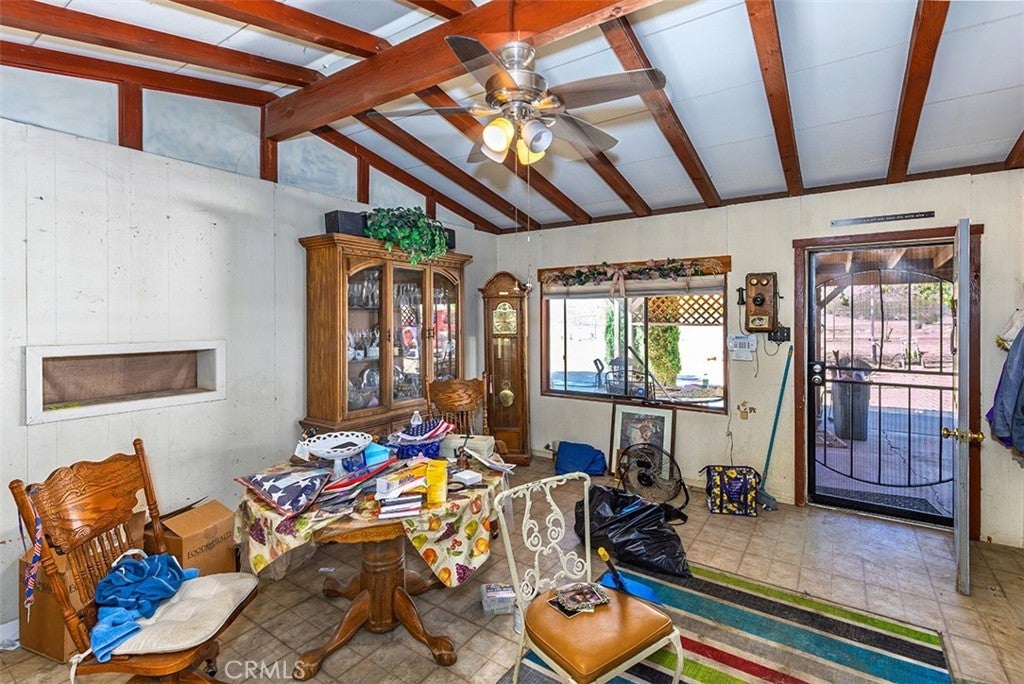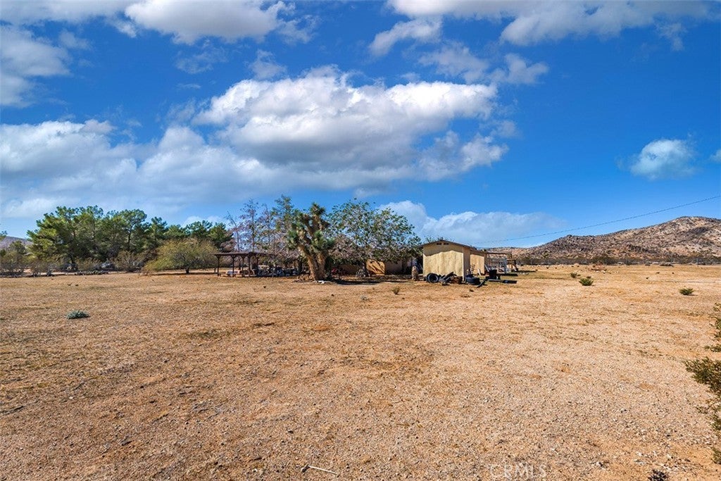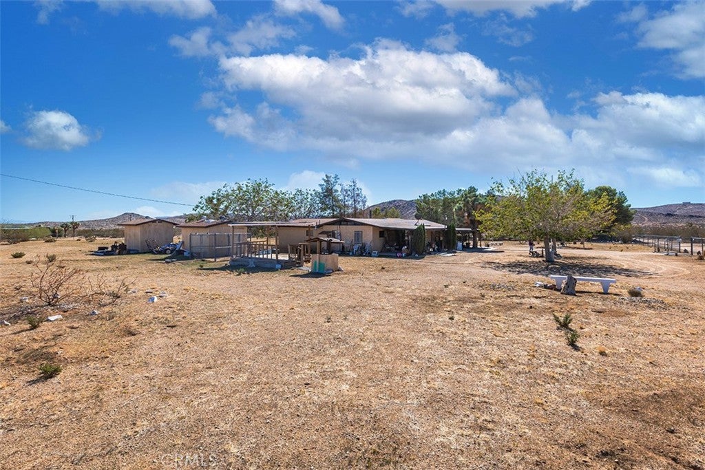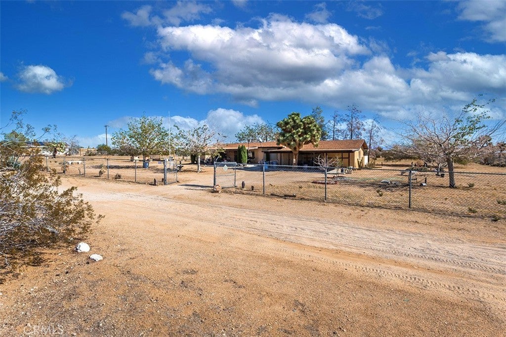 Secluded 2 bedroom, 2 bathroom desert retreat on a large lot nestled between 2 hills and only a few neighbors for miles that could be a great Airbnb, second home, or forever home for someone that wants to get away from the city and have some space to do your own thing. Located close to Joshua Tree, the night sky is incredible out here with the stars so strong you can see the Milky Way. House has been kept in good shape, but could use some updating and new carpets, or completely remodel to make your dream oasis. Brand new roof put on last year. The property is completely fenced and has a well.