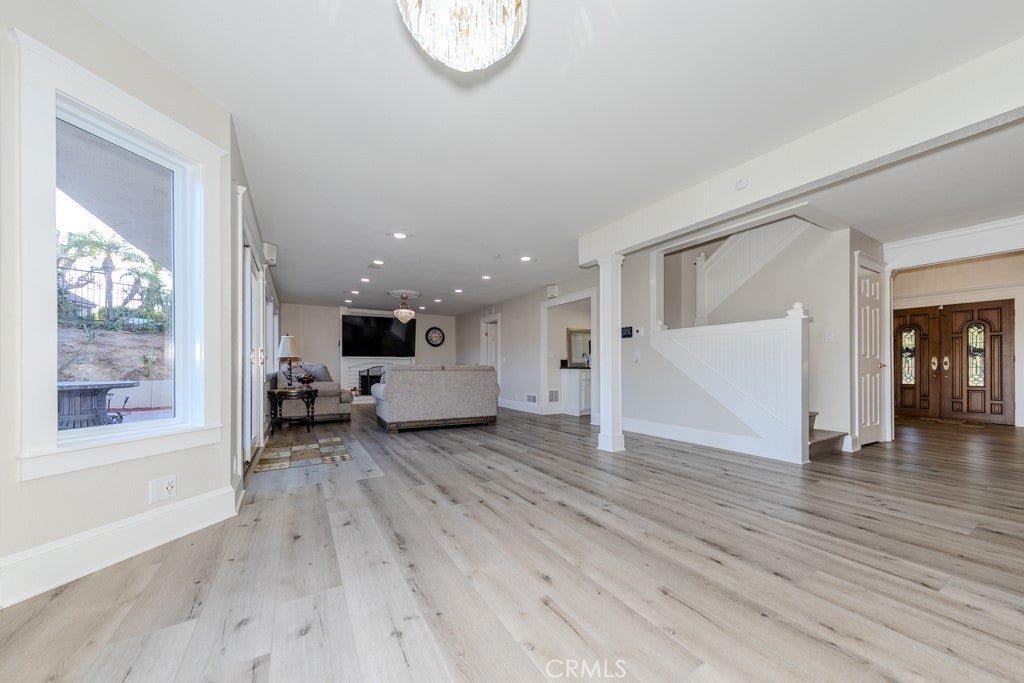 Welcome to the highly desirable Hunters Pointe community of Anaheim Hills! Perfectly situated at the end of a quiet cul-de-sac, this stunning 4-bedroom plus office ( Can be used as first floor bedroom). Spacious living room features a beautiful fireplace and opens seamlessly to the dining room, creating an inviting space for entertaining and everyday living. Open and bright floor plan with soaring cathedral ceilings, wide-plank flooring, and two cozy fireplaces, one in the living room and one in the family room. The spacious family room also features a stylish wet bar, perfect for entertaining guests. The open-concept kitchen offers granite countertops, double oven, stainless steel appliances, ample cabinetry, and a breakfast bar that flows seamlessly into the family room. Upstairs, offers 3 bedrooms plus full bath and a master bedroom. The large master suite is a true retreat with vaulted ceilings, generous closet space, a separate tub and shower, and tranquil views. Enjoy the outdoors in your expansive backyard with beautiful views of the Oak Canyon Nature Center, a peaceful setting ideal for relaxing or hosting gatherings. Additional highlights include an inside laundry room. .Close to top-rated schools, parks, shopping, dining, and walking trails, this home offers the perfect blend of privacy, comfort, and location.