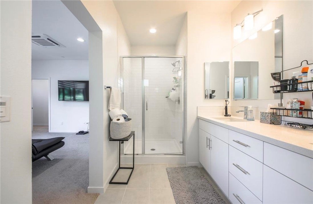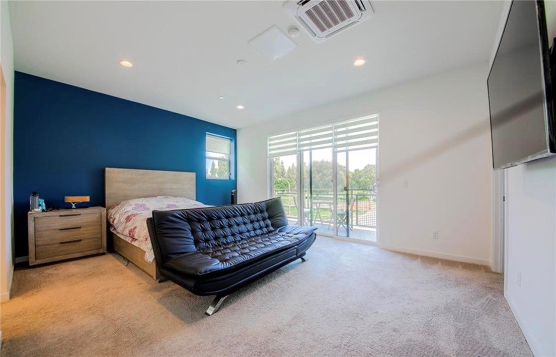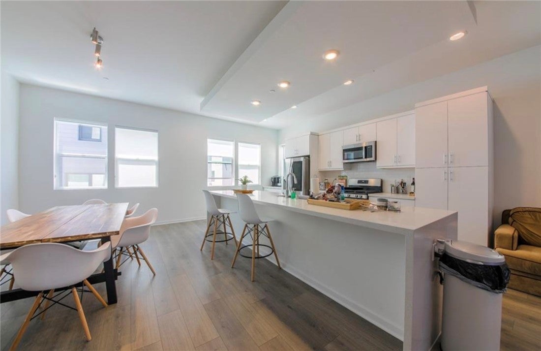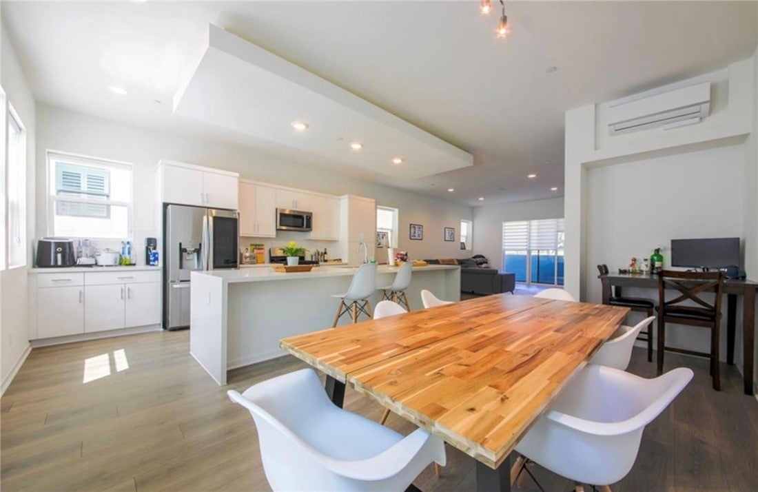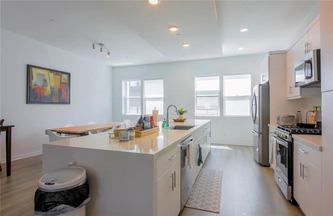 Built in 2020, this contemporary townhome in the desirable West Village Community offers the perfect blend of comfort, convenience, and style. The first floor features a private bedroom with its own full bath—ideal for guests or an office—and direct access to the spacious two-car garage. Upstairs, the main level opens to a bright, open layout that seamlessly connects the living, dining, and kitchen areas. The gourmet kitchen showcases a large quartz-top island, sleek cabinetry, and stainless steel appliances. Also on this level is a private deck and a half bath. On the top floor, the primary suite offers a generous walk-in closet and its own private balcony. Two additional bedrooms, a full bathroom, and an in-unit washer and dryer closet are just down the hall. Each floor and room has its own AC unit, and energy-efficient solar panels help keep utility costs low. Located minutes from Downtown Brea, the Brea Mall, and major freeways, this home combines modern living with unbeatable convenience.