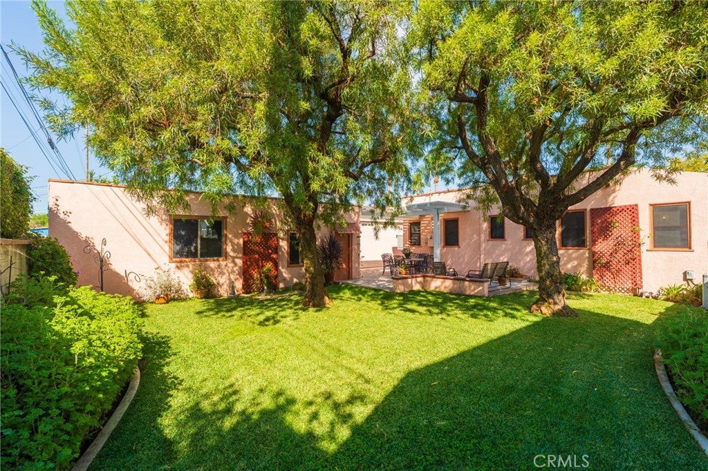 This stunning Spanish Revival home rarely comes to market, set on a gorgeous, quiet street filled with unique custom historic properties in a prized part of the Anaheim Colony Historic District. The vintage elegance inside shines with original architectural details: soaring coved ceilings, a gas fireplace, and expansive room sizes, complemented by the home's hardwood floors, built-in bookcases, and dramatic arched front window. Hosting is easy with the spacious dining room, featuring beautiful pocket French doors to the living room and an exterior French door leading to the front porch for optimal flow. The kitchen has been tastefully updated with real oak cabinets, a pantry, tiled counters, and a fabulous breakfast nook with built-in benches. Out back, a French door leads to a picturesque yard with a covered patio and mature trees that filter the afternoon sun, keeping the house cool. Both bedrooms are large with walk-in closets, and while vintage, the home enjoys the essential modern upgrade of central air and heat, plus a very long tandem garage perfect for two cars or a generous workshop. This home may be eligible for the Mills Act program through the City of Anaheim where the new owner may be able to save up to 60% off of their property taxes. Location is key: you're just blocks from beautiful Pearson Park (duck pond, courts, events) and a short distance to the vibrant dining and entertainment of the Center Street Promenade and Packing District, with the 5, 91, and 57 Freeways minutes away. This home truly is the whole package.