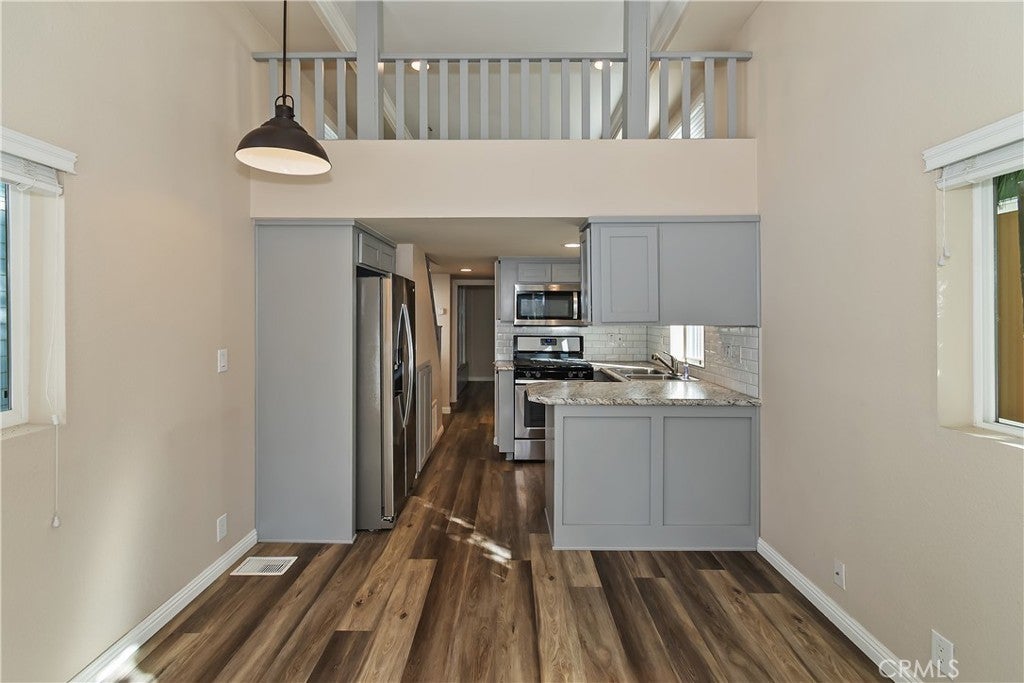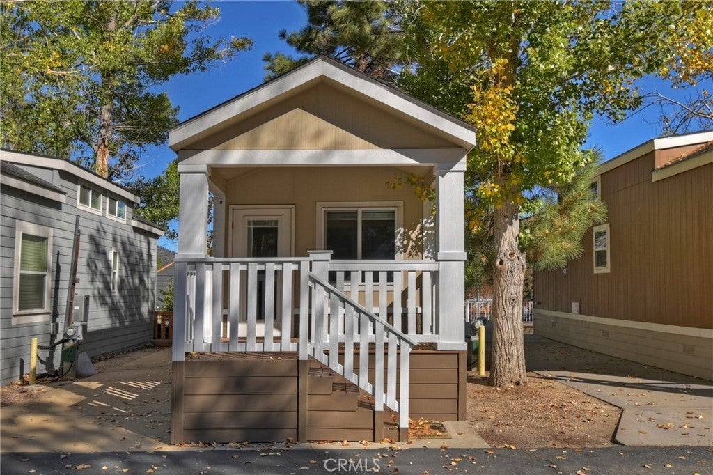 Discover this beautifully maintained 2019 tiny home—an absolute must-see! Ideally situated in the heart of Big Bear, you’ll enjoy being just a 5-minute walk from the Village and lake, with Snow Summit Ski Resort only 2 miles away. The inviting covered front porch features a durable Trex-style deck and low-maintenance Masonite siding for worry-free living. Step inside to find vaulted ceilings in the living room and a thoughtfully upgraded kitchen, complete with stainless steel appliances (including refrigerator and gas range) and sink. The main floor bedroom offers convenient single-level living, while the loft provides a great option for a second sleeping area or extra storage. There are also hookups ready for a stackable washer and dryer. A Tuff Shed on the back of the property is really convenient for additional storage! This welcoming all-age community boasts fantastic amenities such as a swimming pool, on-site management, office, laundry facilities, community showers, picnic area, and BBQ. Please note: short-term rentals and subleasing are not permitted, and both buyers and pets require management approval. With a space rent of just $850, this home is an excellent opportunity for anyone seeking an affordable, modern, and minimalist lifestyle in a prime location