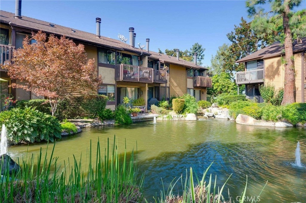 Experience tranquil living in this spacious end-unit home tucked inside the beautifully landscaped Lakeridge gated community. Surrounded by lush greenery, winding streams, and mature trees, this Whittier gem offers a peaceful retreat while keeping you close to shopping, dining, and freeways. Step into a bright and open living room with large sliding glass doors to the outside patio, a cozy fireplace, and natural light that flows into the dining and kitchen areas. The kitchen offers wood cabinets, a garden window, and a breakfast bar. Upstairs, both bedrooms enjoy vaulted ceilings. The primary suite has two closets and a private balcony. Additional highlights include central air conditioning, a private laundry area, and two parking spaces. Guest spaces are located steps away. A little updating could make this your dream home. The community has pools, a spa, tennis courts, and walking trails. The assigned schools are Mill, Walter, and Whittier High. Close to the San Gabriel Bike Path and Whittier Narrows Recreation Area.