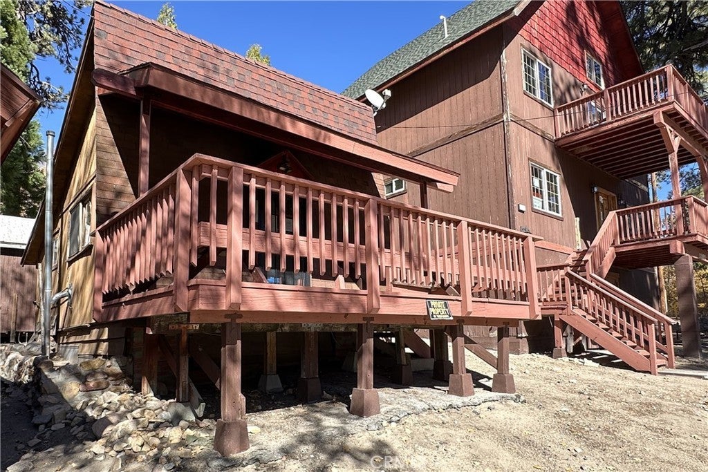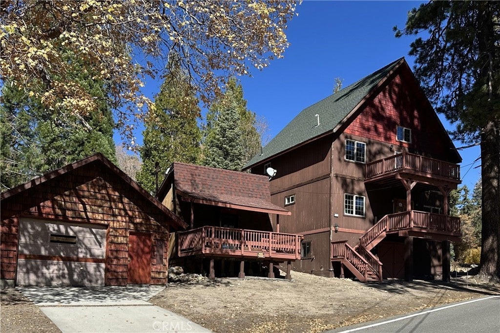 Charming Mountain Retreat in Green Valley Lake! Private and peaceful setting at the end of the road before entering the National Forest. This unique property features three separate structures with a total of 2,124 sq. ft. of living space. The main house offers an open living room, dining area, and kitchen with granite countertops and a center island, along with a main-level bedroom and bathroom. Upstairs features two bedrooms, a shared hallway bathroom, and a spacious primary suite with private deck and private bathroom with jacuzzi tub and separate shower stall. Detached garage and ample off-street parking. Located just minutes from Green Valley Lake, enjoy easy access to fishing, hiking, and ski resorts. Ideal for full-time living, a weekend retreat, or investment opportunity.