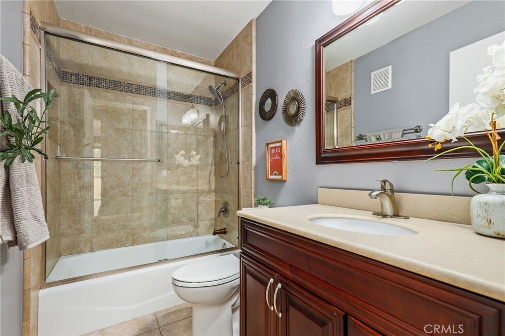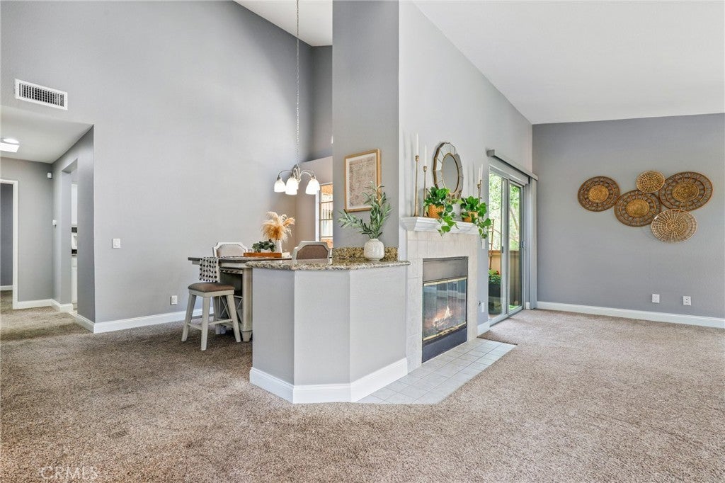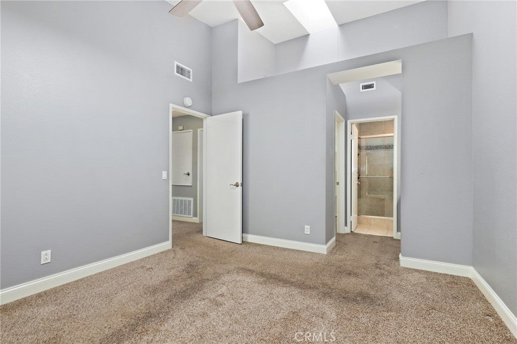 Welcome to The Hills in Yorba Linda! This light-filled upper-level condo combines treetop serenity with easy everyday living. The front door opens to a soaring living room with vaulted ceilings, a fireplace, and a door to a rare wraparound balcony—ideal for morning coffee and breezy evenings. A defined dining area bridges the living room and kitchen, where tile flooring, granite counters, stainless appliances, and a second balcony access make cooking and entertaining a breeze. The thoughtful layout offers two bedrooms and two baths, including a private primary suite with vaulted ceilings, a skylight with remote shade, a large walk-in closet with upgraded organizer, and an ensuite ¾ bath. The exceptionally spacious secondary bedroom sits near a full hall bath. Your own laundry/utility room is conveniently located off the balcony, and yes—ALL appliances are included. Abundant windows pull in natural light and frame the natural beauty of the surrounding Yorba Linda hillsides. Recent upgrades include a fully replaced HVAC system within the last two years. Parking is simple with two reserved covered spaces plus ample guest parking. Community amenities include multiple pools, sport courts, and playgrounds. Tucked away from the bustle yet close to shopping and dining at Savi Ranch, with nearby parks, trails, walkways, and bike paths, and quick access to the 241 Toll Road for commutes to Irvine and central Orange County. Move-in ready, well-located, and wonderfully livable—5065 Twilight Canyon Rd #35G has it all.
