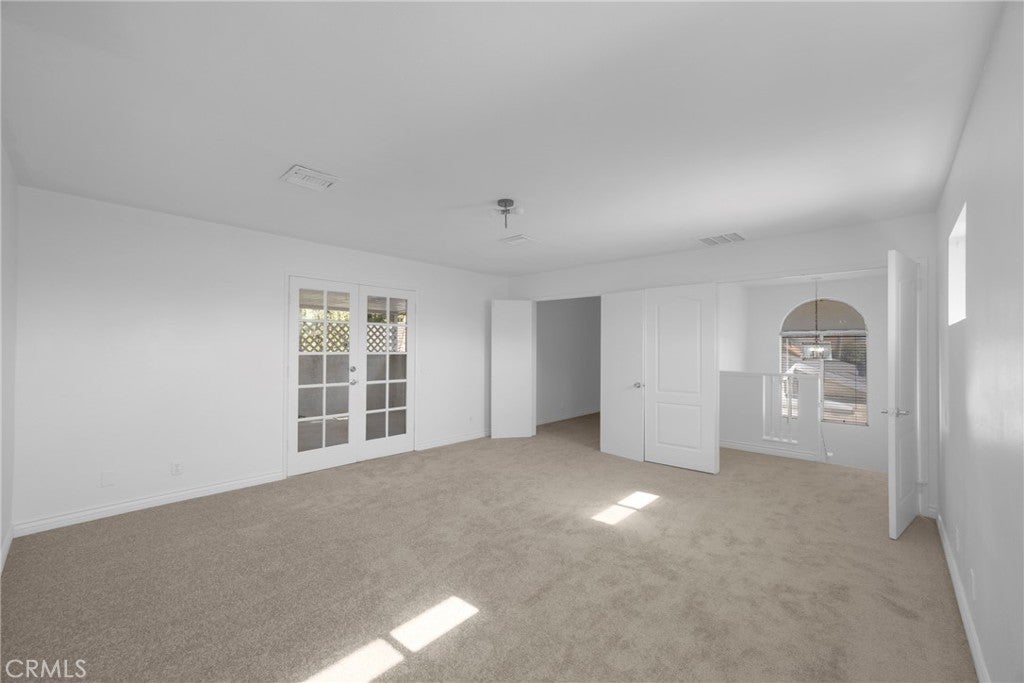 A spacious two-story home offering 4 bedrooms, 3 bathrooms, and a flexible floor plan ideal for both family living and entertaining. Step inside to find fresh interior paint, brand new carpet in all bedrooms, dual zone central AC, and a new water heater. The main level features multiple living spaces filled with natural light, highlighted by skylights and French doors that open to a covered patio and private backyard, perfect for relaxing or entertaining outdoors. The kitchen offers generous cabinet and granite counter space with a convenient breakfast bar overlooking the open dining and family areas. Upstairs, the entire top floor serves as a private primary suite retreat with an oversized walk-in closet, dual-sink bathroom, and French doors leading to a large balcony overlooking the yard. A charming street presence, attached garage, and central Santa Ana location close to local parks, schools, and freeways make this a wonderful opportunity to own a move-in-ready home with great space and potential.
