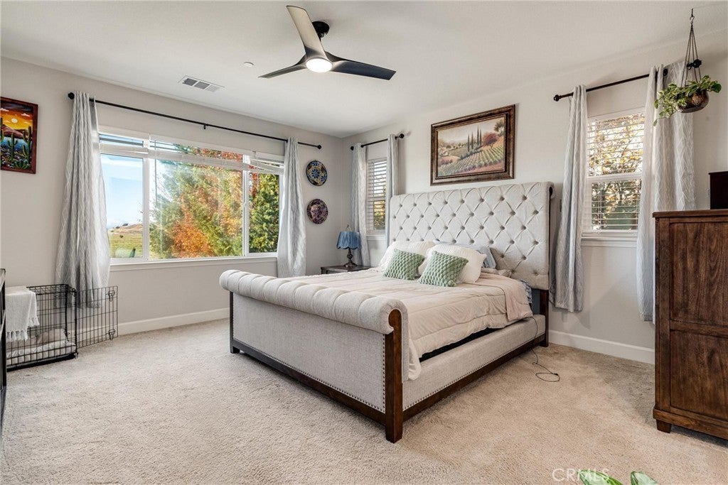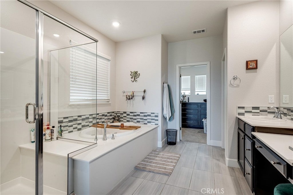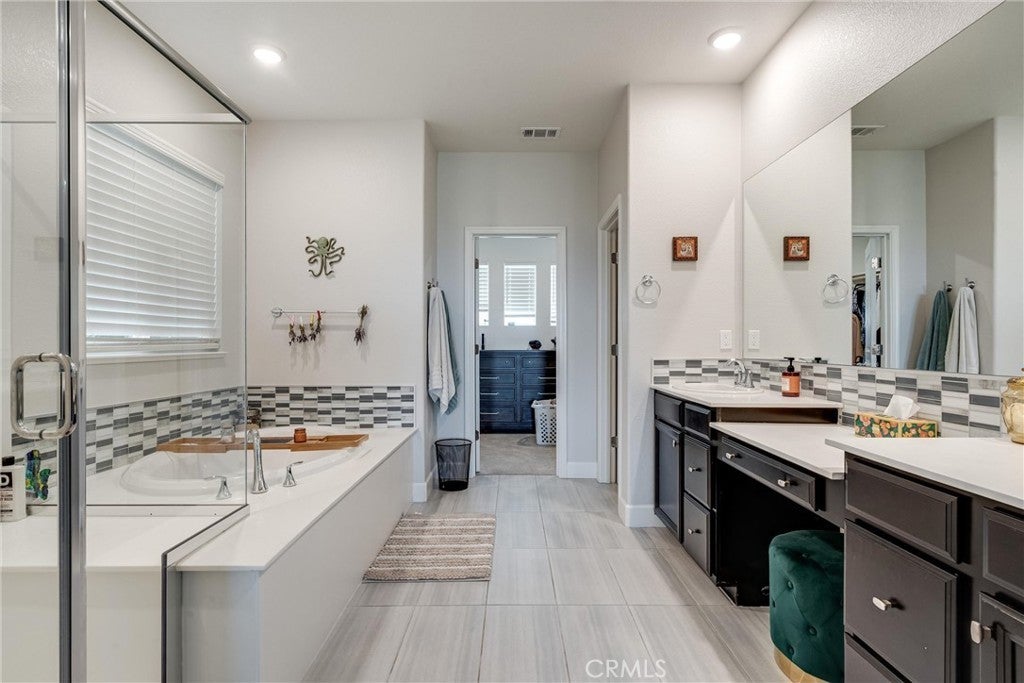 Welcome to your new home! Built in 2019, this spacious home is filled with modern luxuries and boasts a thoughtful design. Step into comfort and style with this remarkable two-story multi-generational home, designed with both elegance and functionality in mind. Perfect for families or those who love to entertain, this residence offers an open layout, premium finishes, and ample space throughout. At the heart of the home is a gourmet kitchen, featuring a large center island that is ideal for cooking, casual meals, or hosting guests. The kitchen flows seamlessly into the family room, creating a warm and inviting space for both gatherings and everyday living. This home boasts a spacious ground-floor en suite perfect for guests or multi-generational living. The second story, the main bedroom, features a large, attached bathroom and a walk-in closet, providing a peaceful retreat with its spacious layout and abundant natural light. Two additional bedrooms each with their own walk-in closets, a large loft and the laundry room make up the remainder of the second floor. This home includes a 3-car tandem garage with lots of space for parking and storage. The house offers an unobstructed view from the back porch of the serene hillside and open fields. Enjoy the grandeur of high ceilings with recessed lighting throughout, which enhances the sense of space and adds modern elegance. Add in the access to top-rated Travis Unified schools, proximity to Travis AFB, and the new train station, and you’ve found a home that truly has it all!