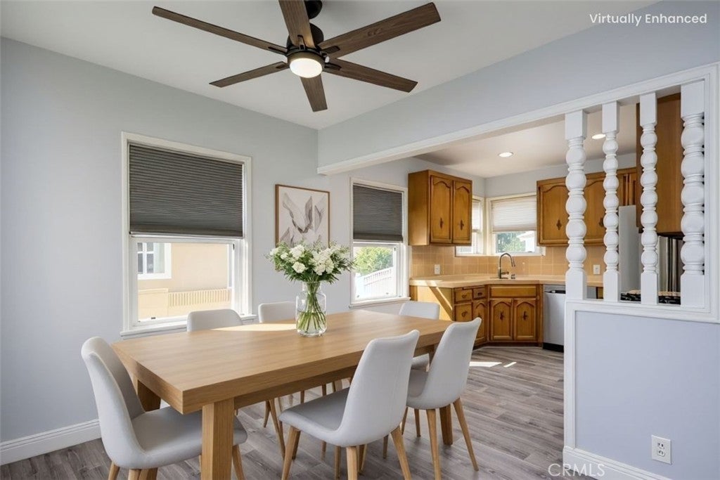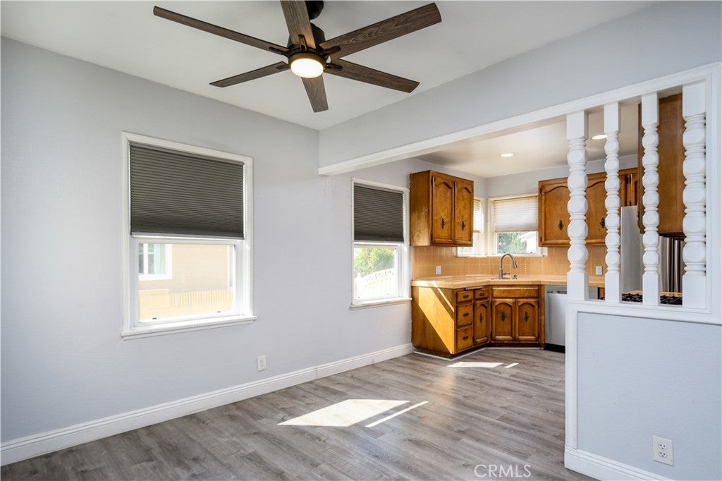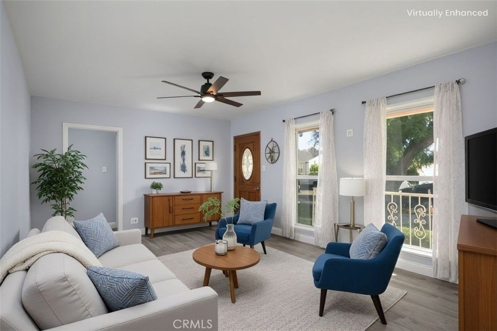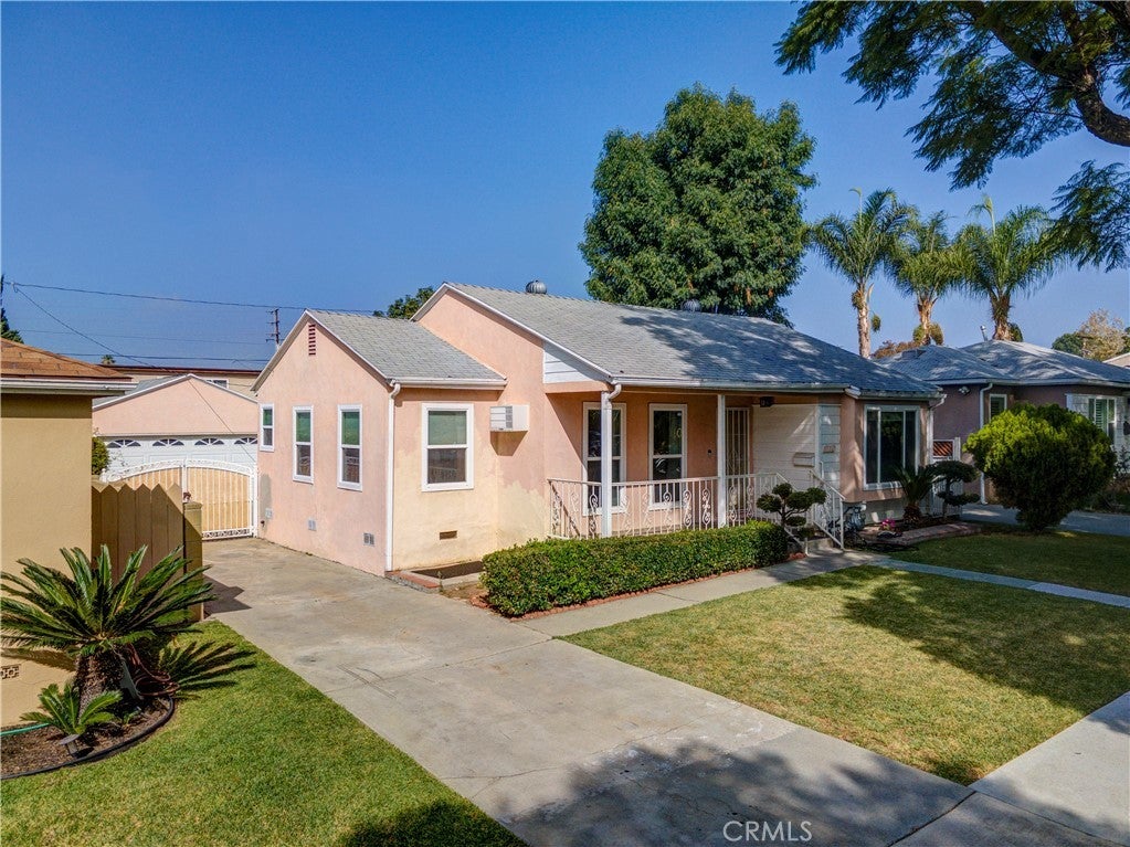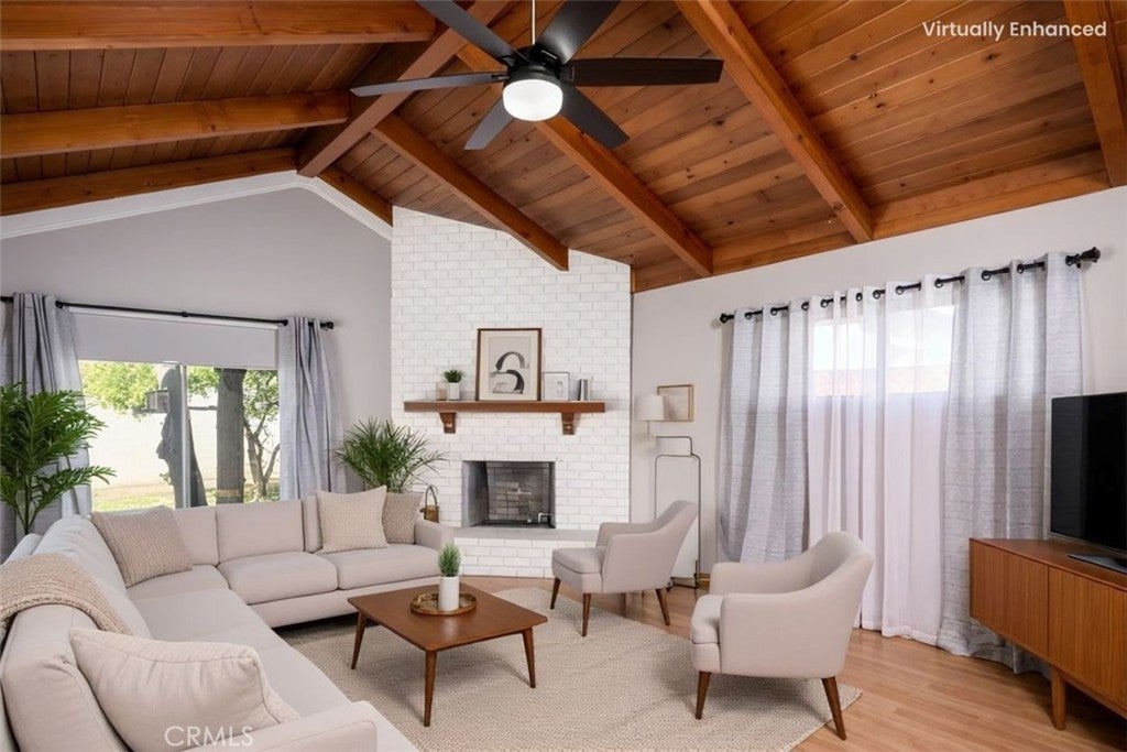 Welcome to this expanded 3-bedroom, 1-bath Whittier home offering 1,505 sq. ft. of living space on a large, flat 5,758 sq. ft. lot. Located on a quiet, tree-lined street, this home features a spacious kitchen that opens to the living room and separate dining area, plus a permitted 420 sq. ft. step-down family room with brick fireplace and high wood-beam ceilings—perfect for gatherings or additional living flexibility. Key upgrades include: 2021 electrical panel, copper plumbing, dual pane windows, scraped ceilings, laminate flooring, 5 ceiling fans, updated sewer line, and carpeted bedrooms for comfort. The property also offers an expanded two-car garage and plenty of outdoor yard space to design or expand as needed. A solid home with great layout, in a well-established neighborhood—ready for your personal touches.