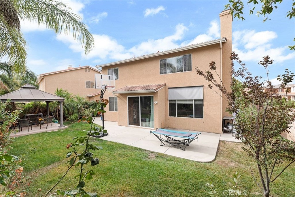Beautiful four-bedroom home with a main-floor bedroom and full bath. Separate living and dining rooms and laminate wood flooring throughout. Upstairs includes a spacious office ideal for working or studying from home. Most rooms feature ceiling fans for year-round comfort. The large backyard is perfect for relaxing or entertaining, with a gazebo equipped with power, lighting, and a fan. Three-car garage plus an oversized driveway offers ample parking, including potential RV space, and includes a 220V EV charger. Prime location within walking distance to parks, shops, Chino Hills High School, and other top schools. Easy freeway access to both Orange County and Los Angeles.